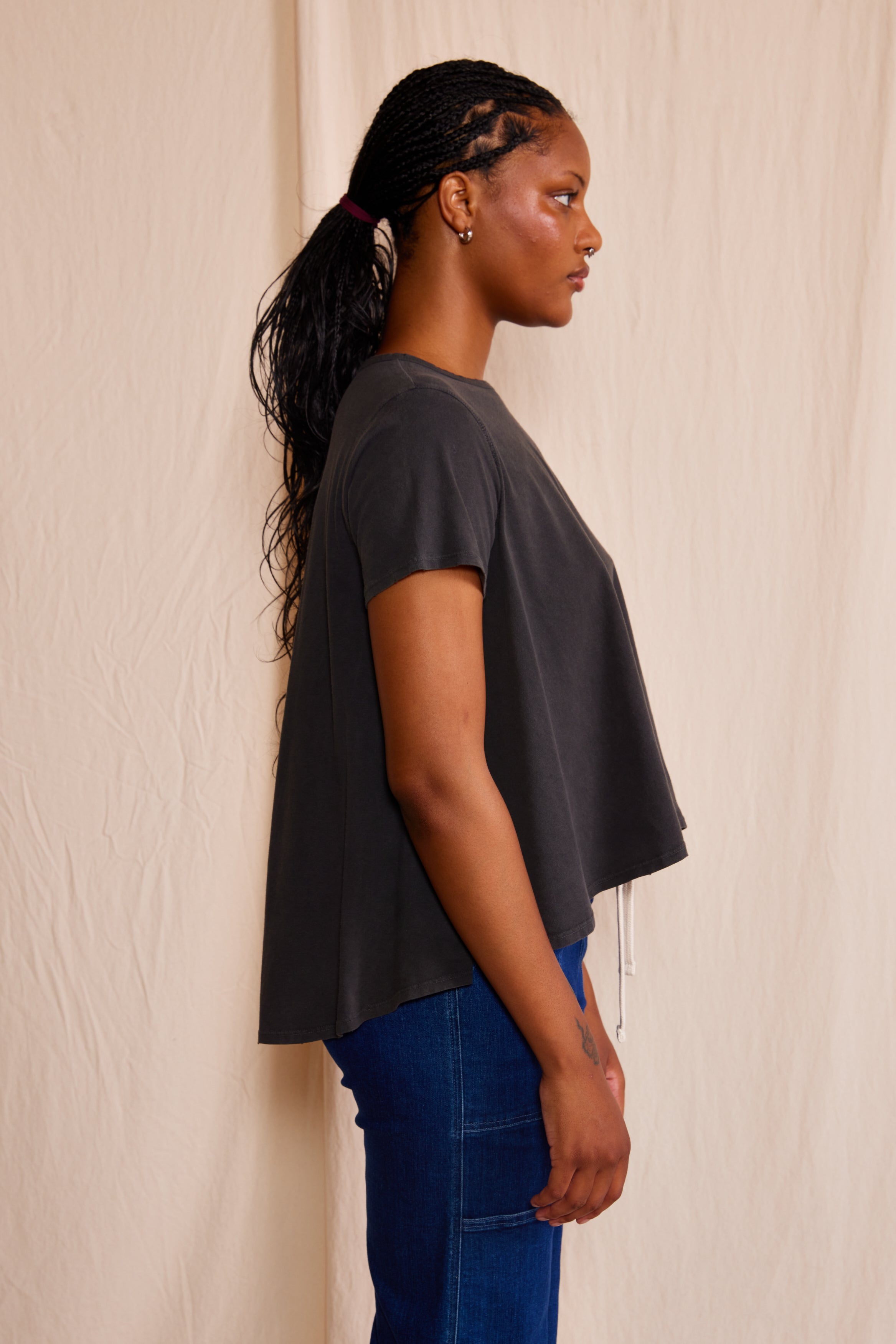Introducing the "Solstice Top," where casual meets chic. Crafted from a blend of 50% recycled cotton and 50% organic cotton, this tee not only emphasizes effortless style but also environmental responsibility. With its rich, charcoal hue and relaxed fit, it's perfect for the eco-conscious fashionista. This versatile piece promises comfort and understated elegance, ideal for both laid-back weekends and trendy evenings out. Embrace a greener wardrobe without sacrificing style.
