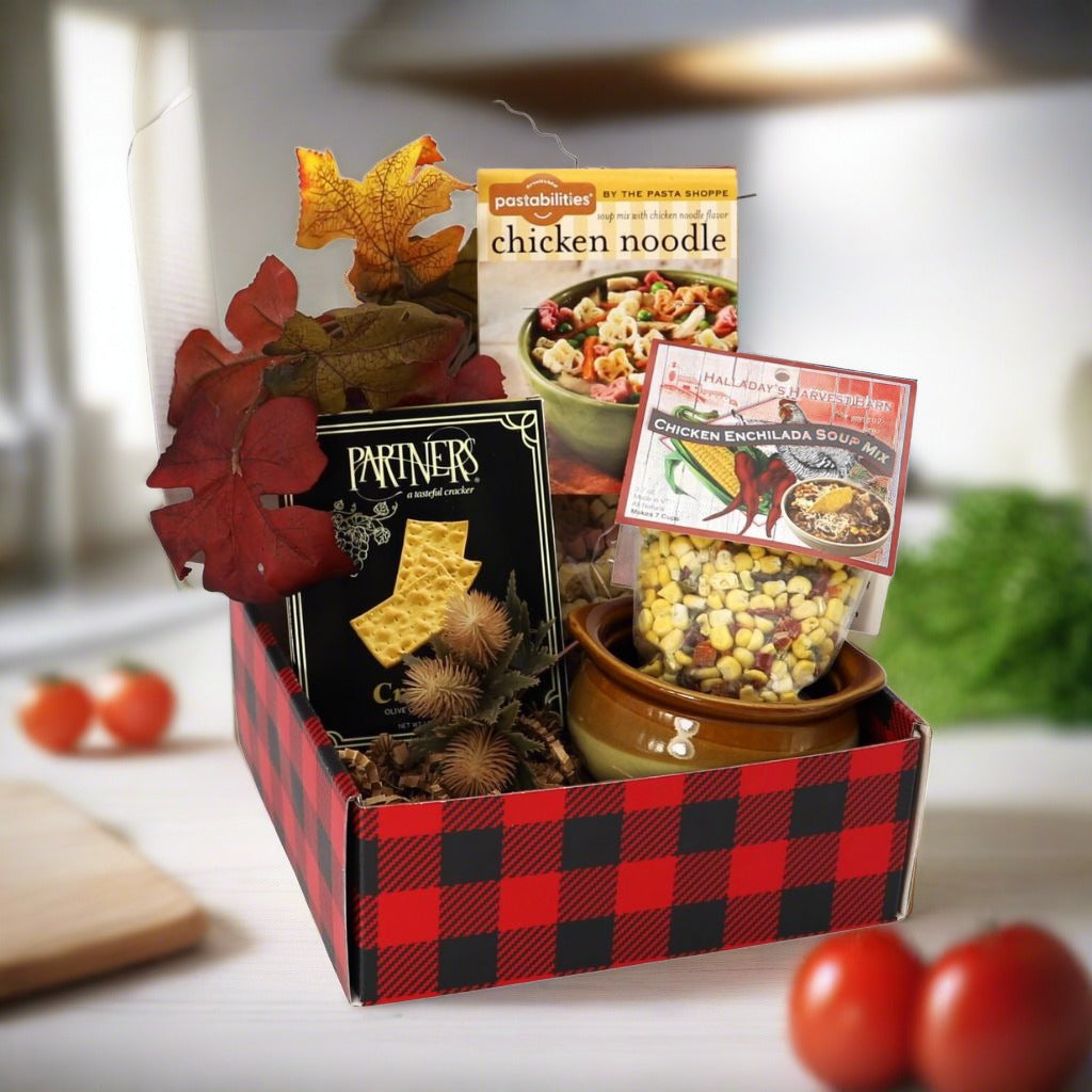 Embrace the cozy atmosphere of homemade soup with our Soup Gift Baskets.