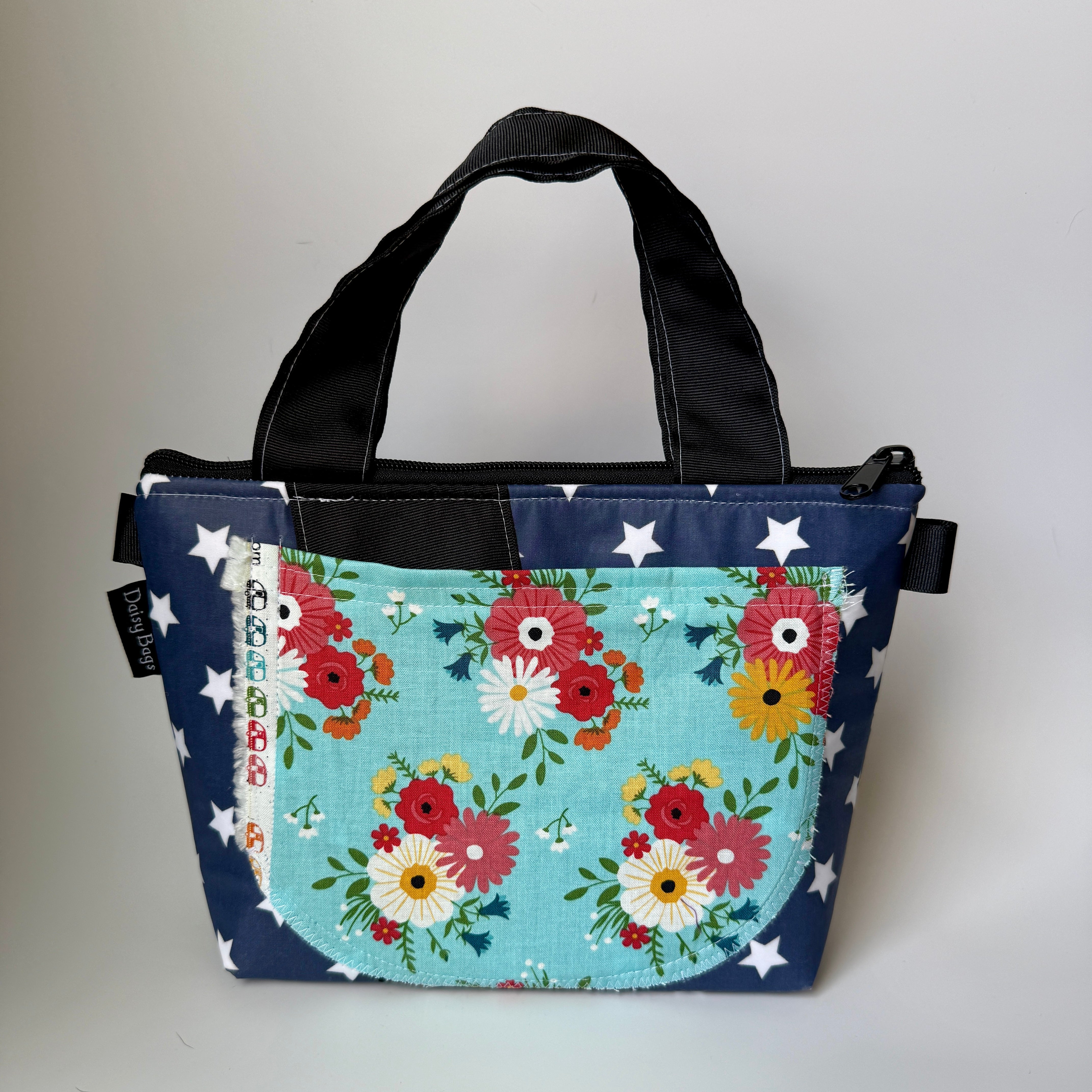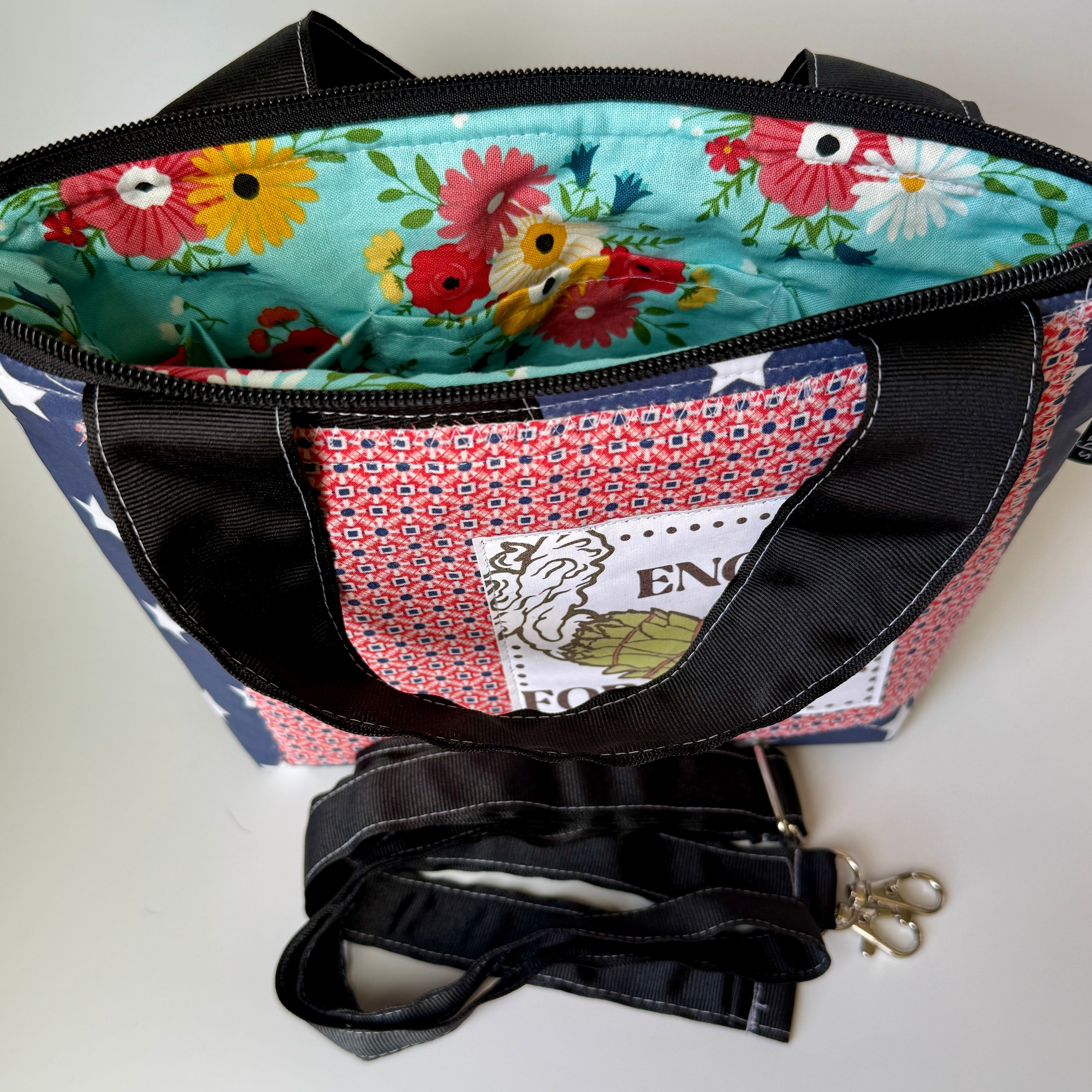 Just like my XL bitty bag BUT short and wide! Carry it by the cute grab handles or attached the adjustable cross body strap.