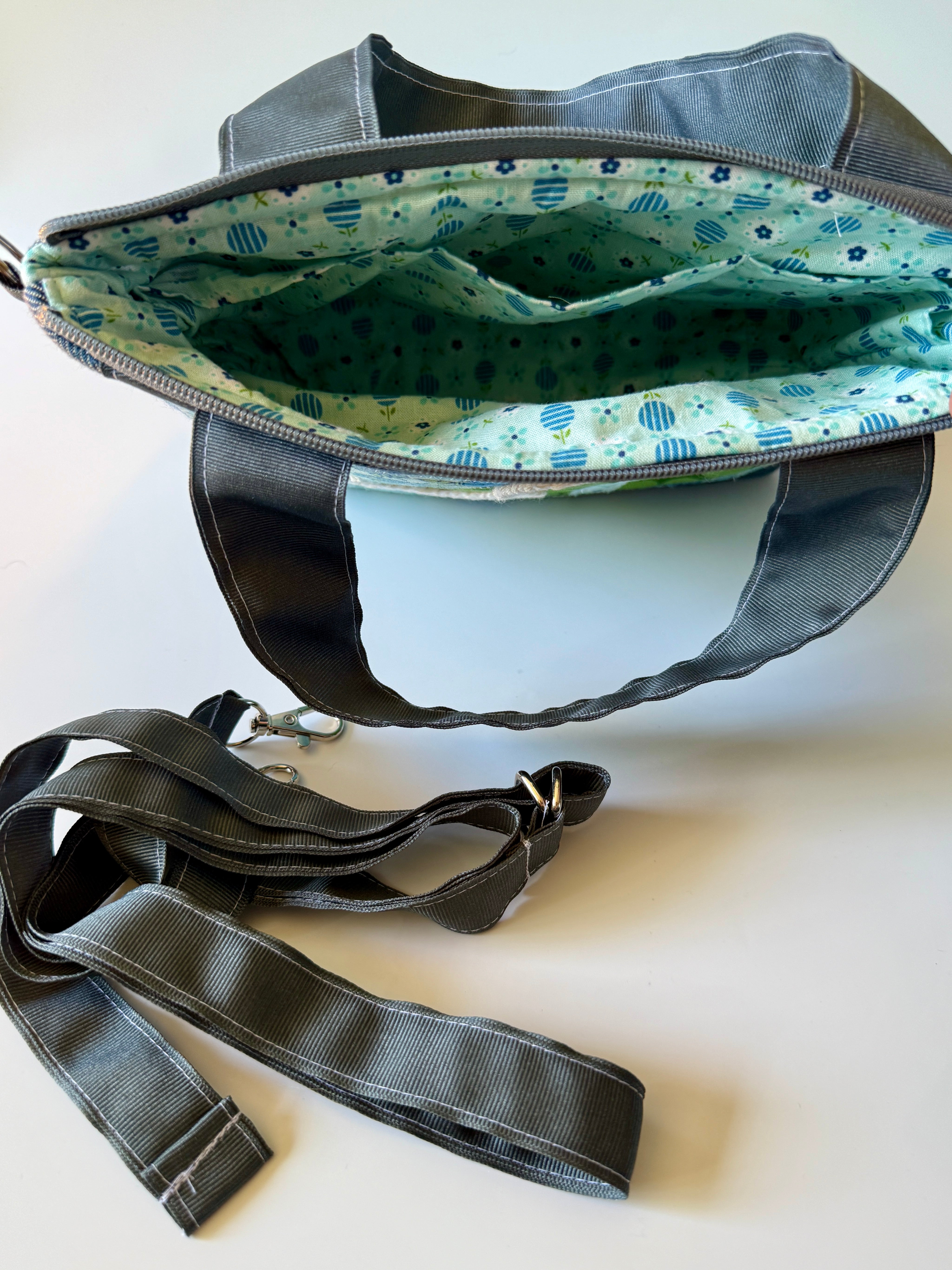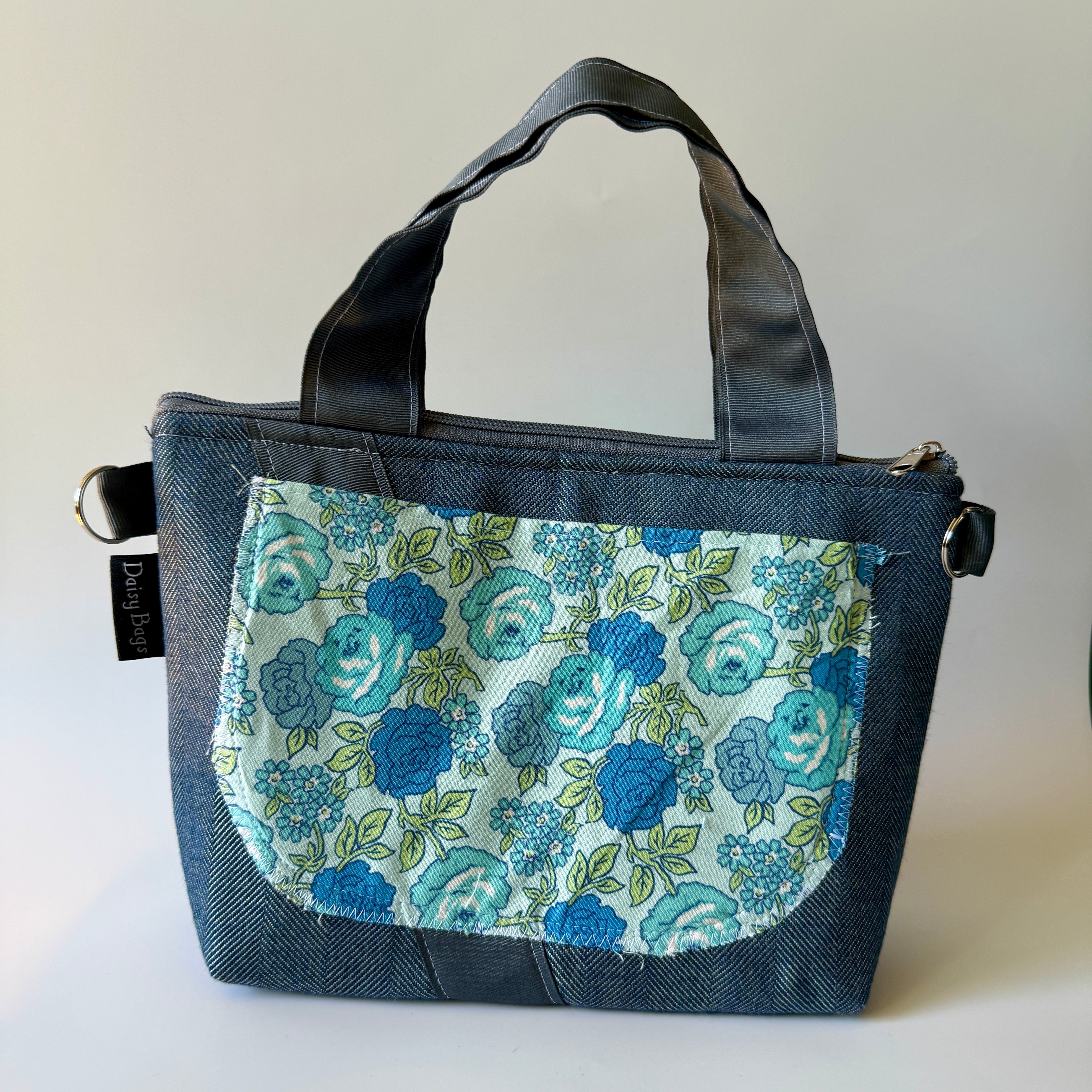 Just like my XL bitty bag BUT short and wide! Carry it by the cute grab handles or attached the adjustable cross body strap.