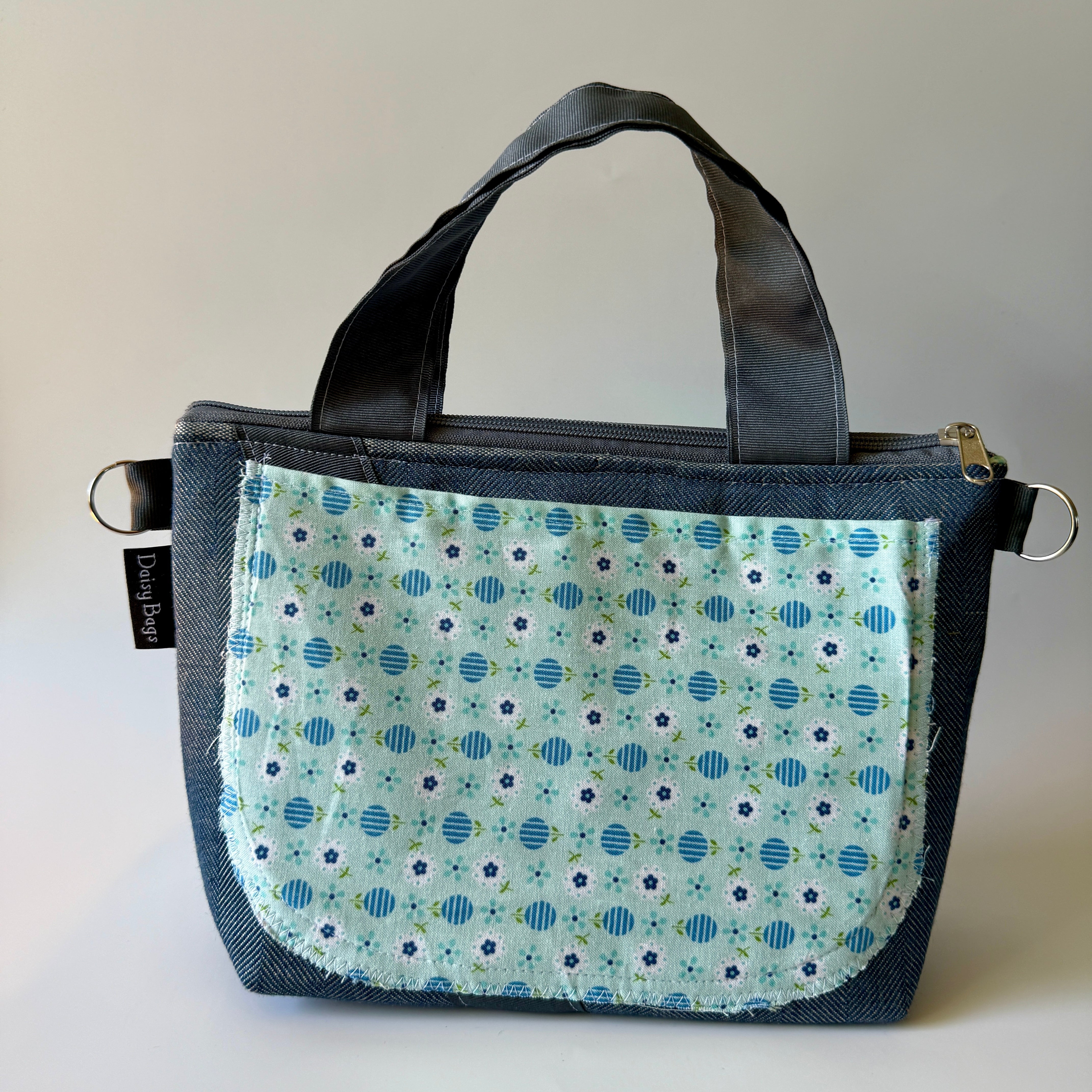 Just like my XL bitty bag BUT short and wide! Carry it by the cute grab handles or attached the adjustable cross body strap.