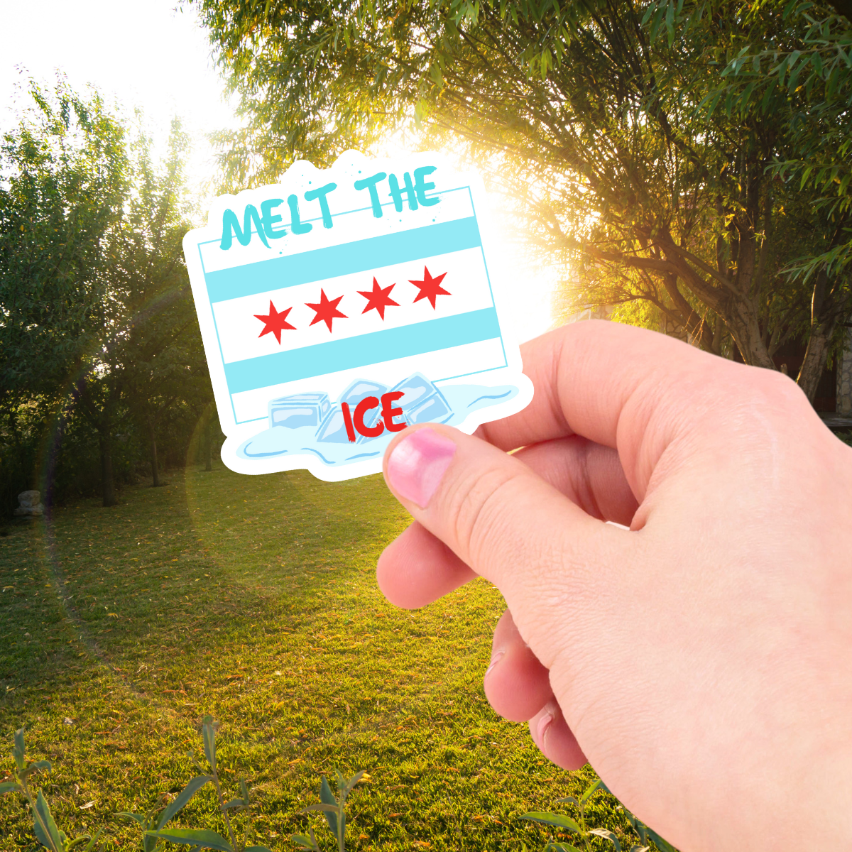 Make a bold statement with the Chinga la Migra waterproof sticker, a cheeky ICE pinata, or melt the ice chicago flag. Crafted to withstand any weather, this durable sticker sticks with you through rain, shine, and everything in between. Perfect for those daring to express their voice and stand firmly for justice wherever they go. Perfect for your home or a gift. Sticker size is 3".