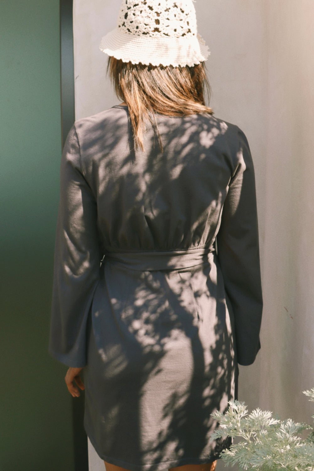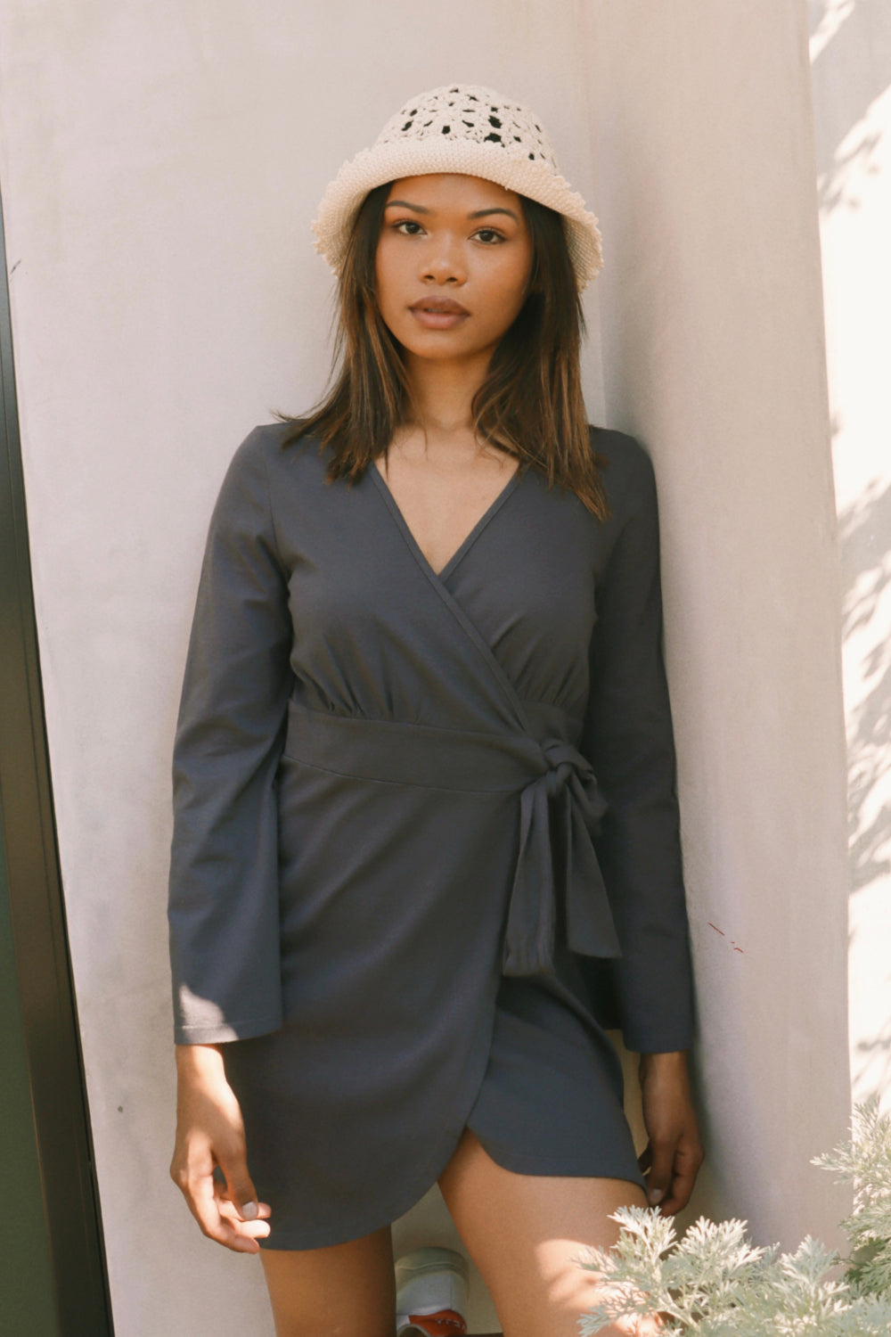 Slip into this easy-to-wear wrap bell sleeve dress. This dress is versatile for all seasons and a transitional go-to piece for sunrise to sunset.