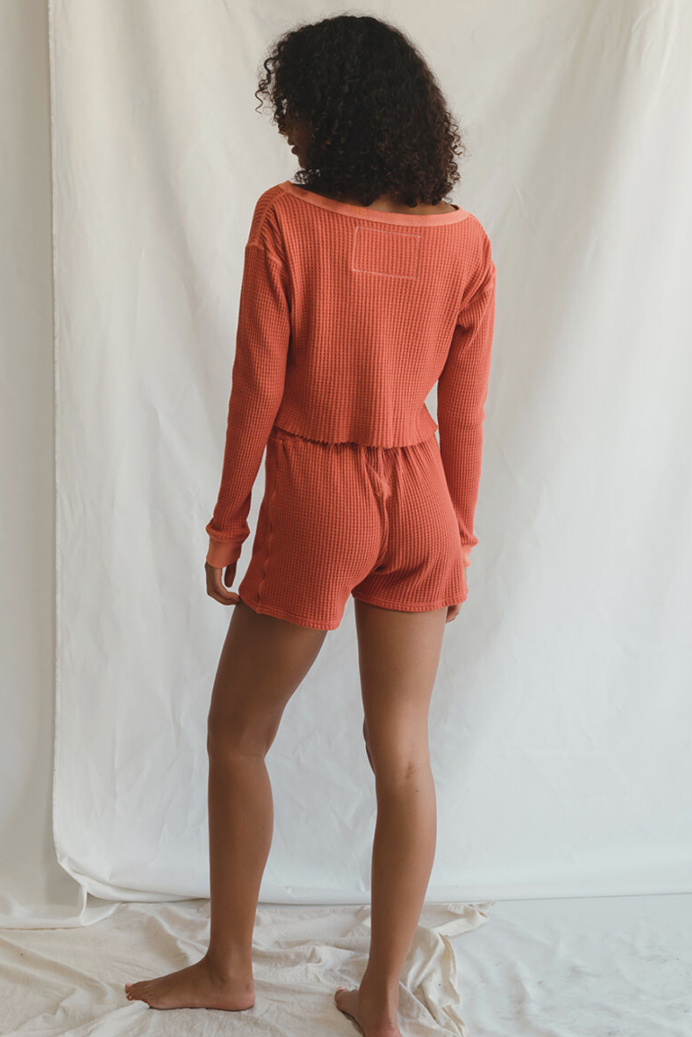 Discover the perfect blend of cozy and chic with our cropped waffle knit top. This incredibly soft and comfortable piece features a stylish cropped silhouette, making it ideal for layering or wearing on its own. The ribbed neckline and ribbed cuffs add subtle textural details and a snug feel. Crafted from 50% Hemp, 48% Organic Cotton, and 2% Spandex, it offers both breathability and just the right amount of stretch for all-day ease.