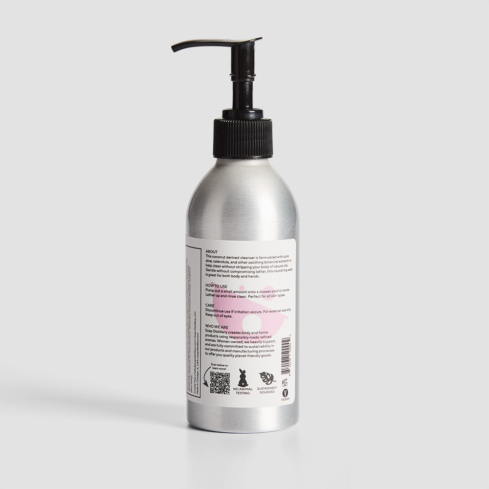 Sodium lauryl sulfate (SLS) free and aloe rich, this thick shower gel is perfect for body, hands, and even hair if you're on the go! Abundant in botanical extracts, our formula is nourishing and gentle enough for most skin types. Our lightweight, aluminum bottle is great for preventing cracking or shattering in the shower while simultaneously being wrapped in a cute but simple label :)