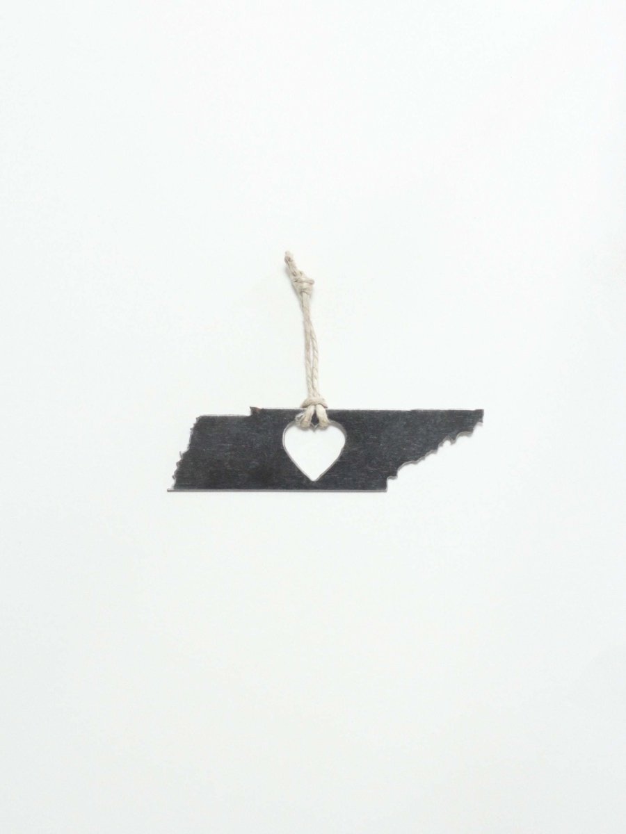 Ornament measures 4.75 inches wide, 1 inch tall and comes with twine hanger.