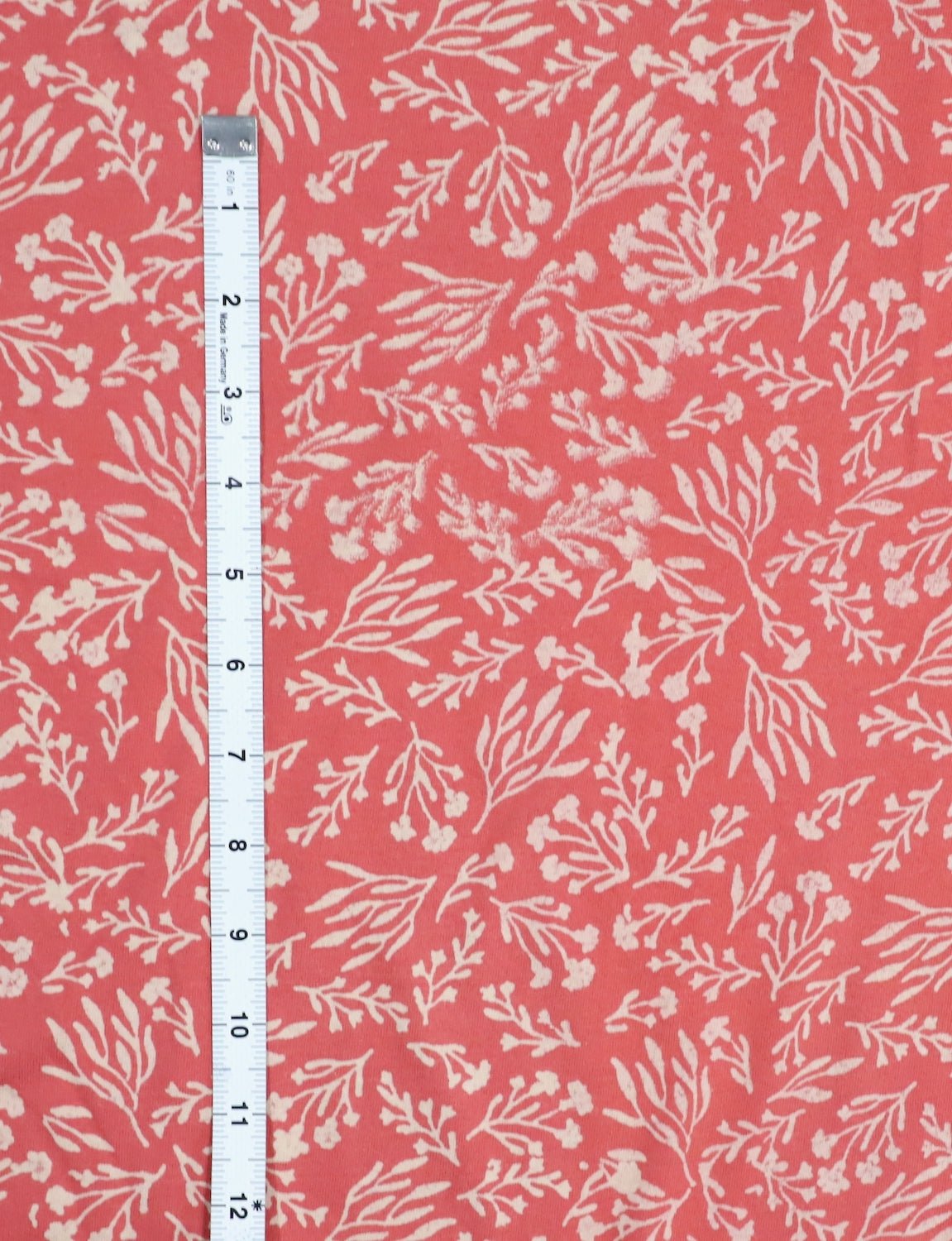 Perfect for spring and summer sewing projects, this charming fabric in terracotta rose combines comfort with style. The botanical floral inspired print pairs beautifully with both casual and dressy pieces, offering versatility in your handmade creations.