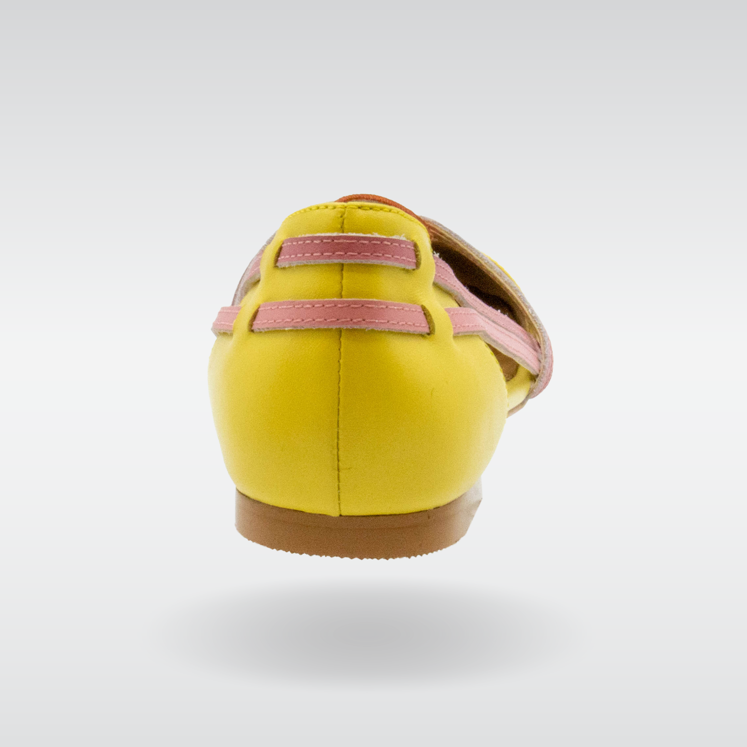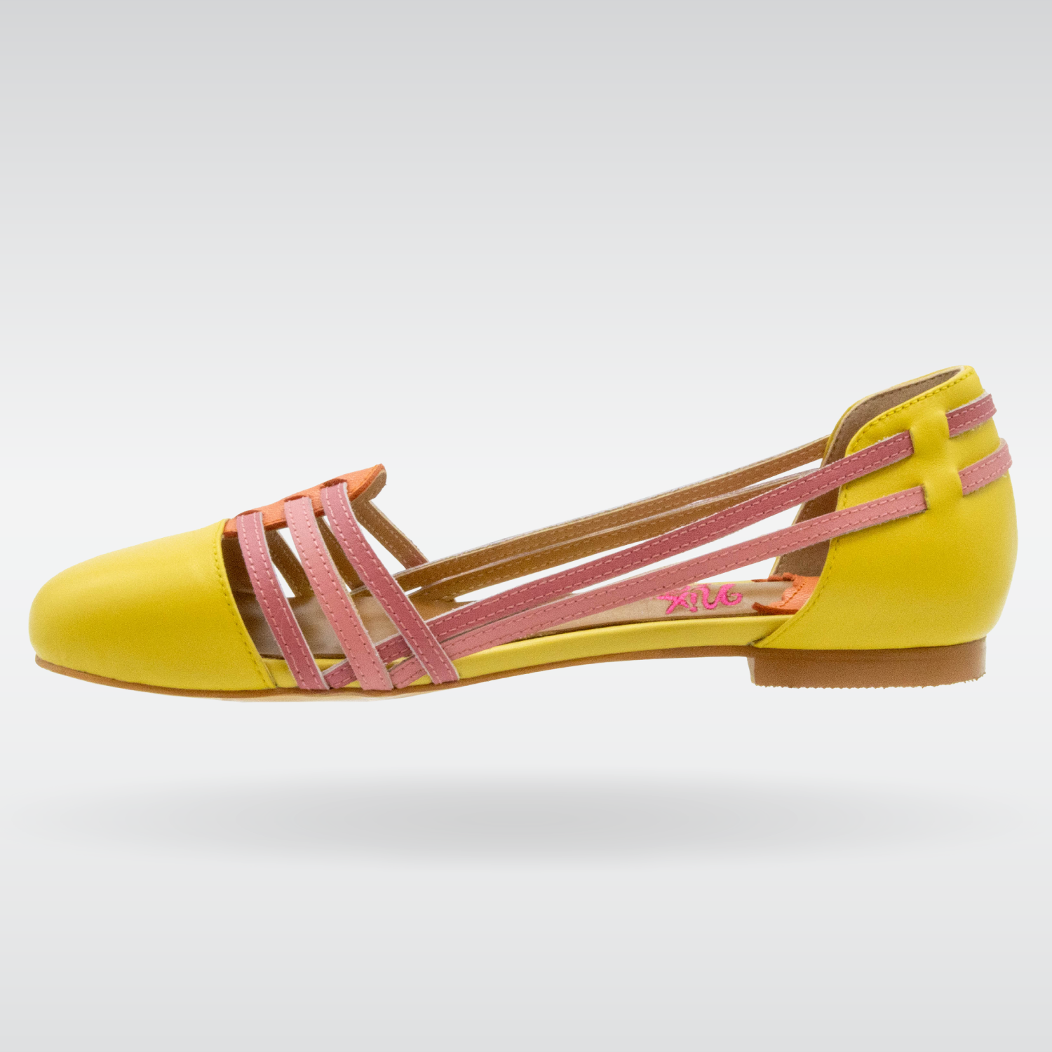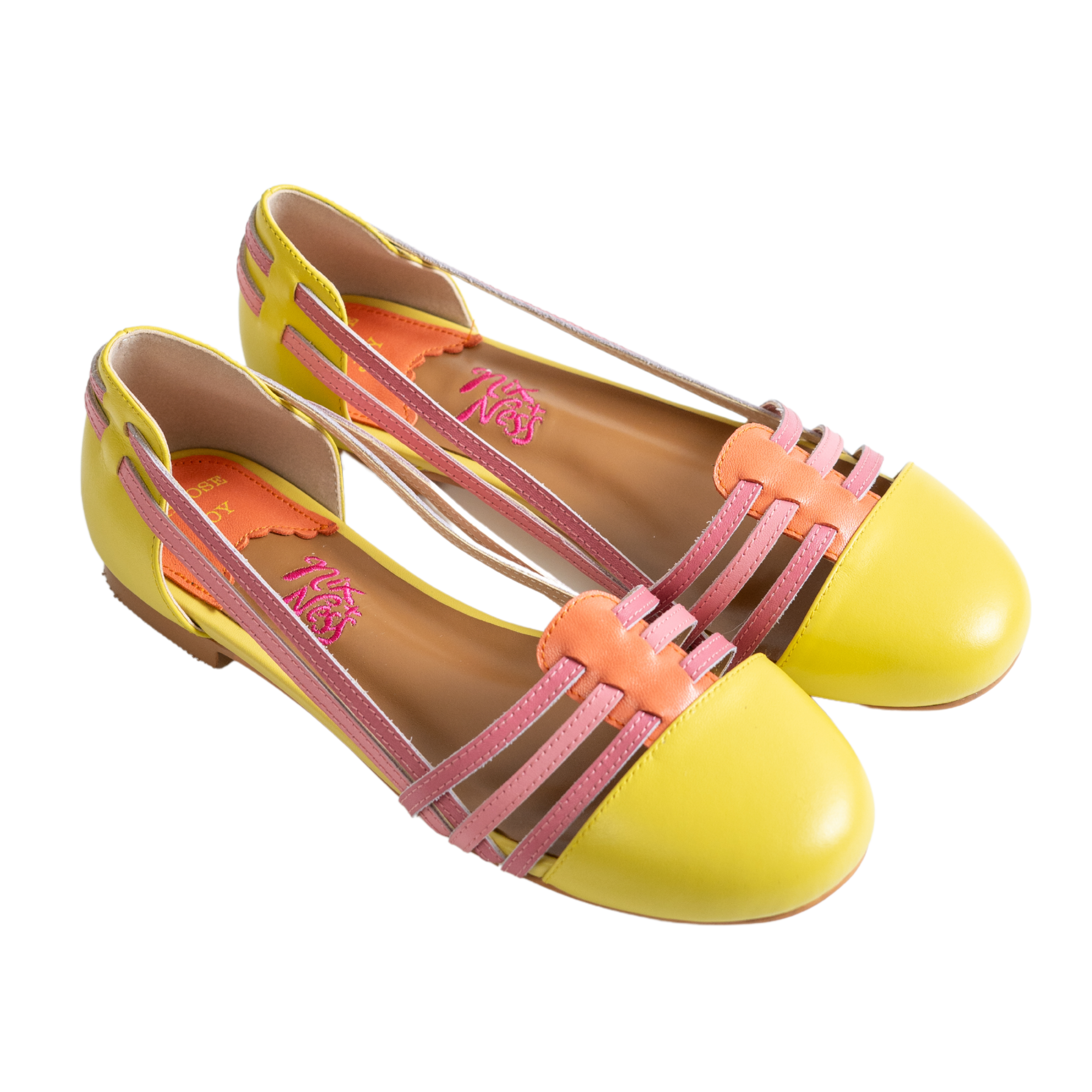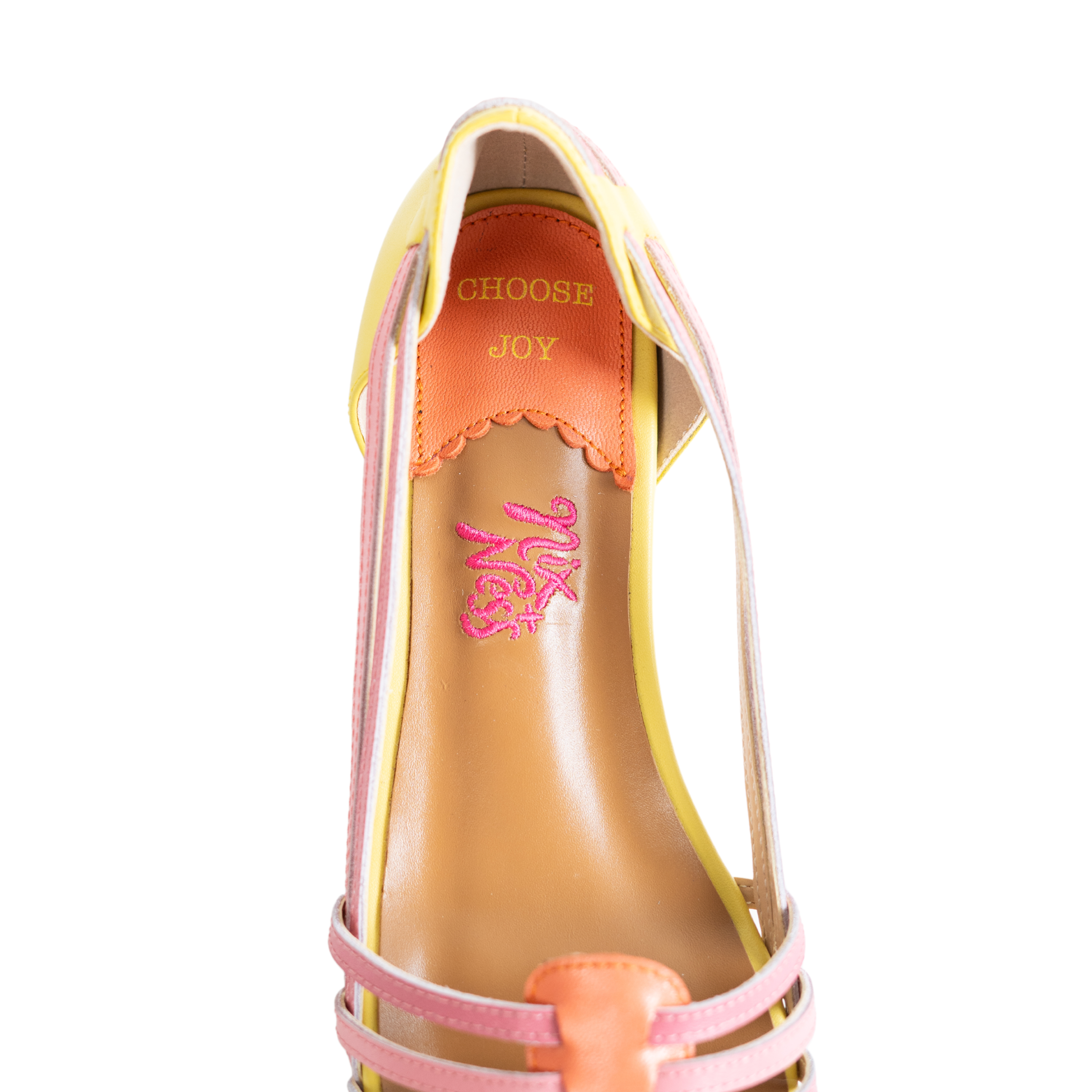 It will be almost impossible not to be joyful when wearing these colorful shoes! Handmade with yellow, orange and pink leather, the Choose Joy sandals are ready for those days when you just want to smile.