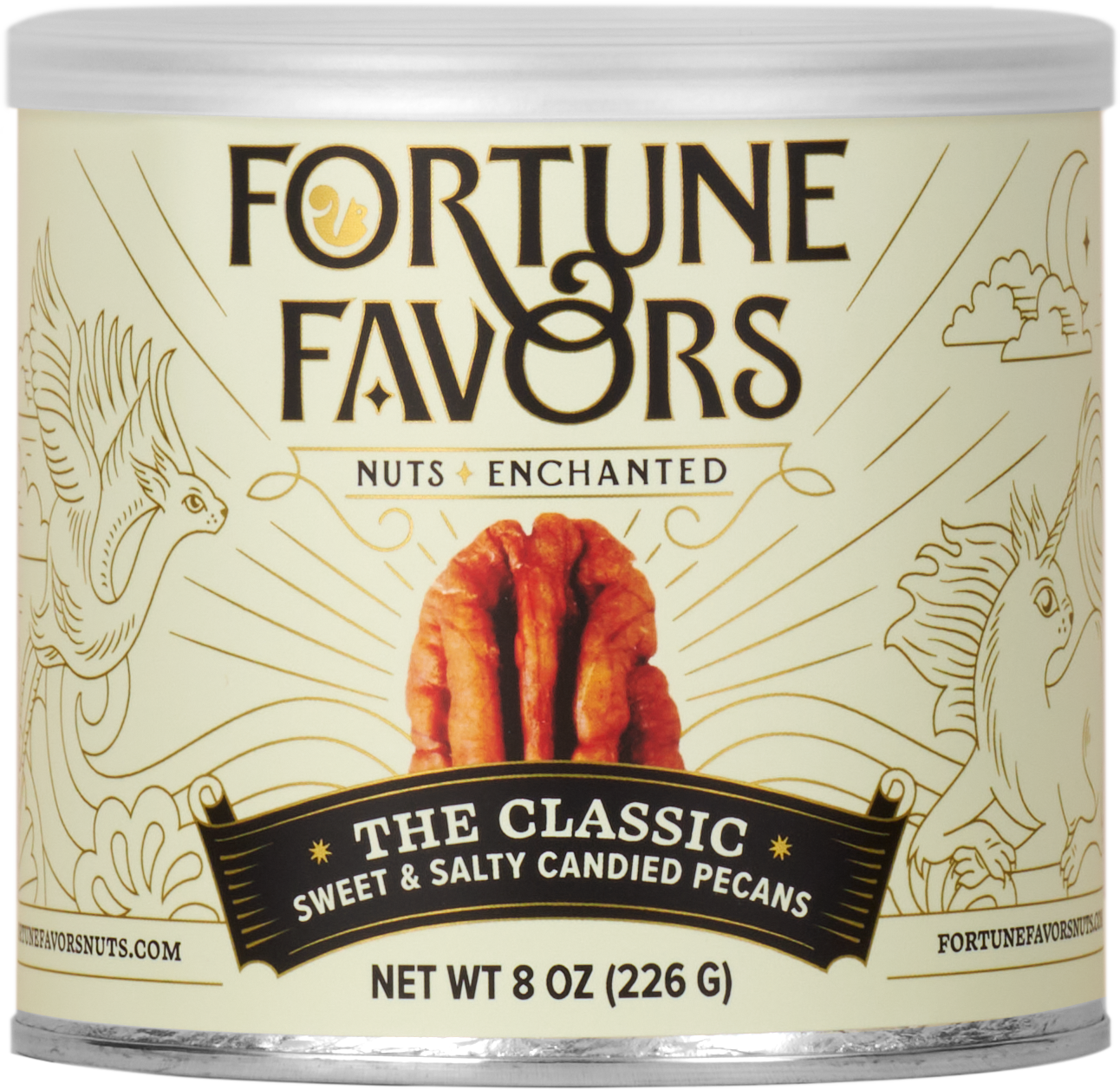 Fortune Favors The Classic golden candied pecans –  enchanted by a delicate finish of salty and sweet with a satisfying crunch.