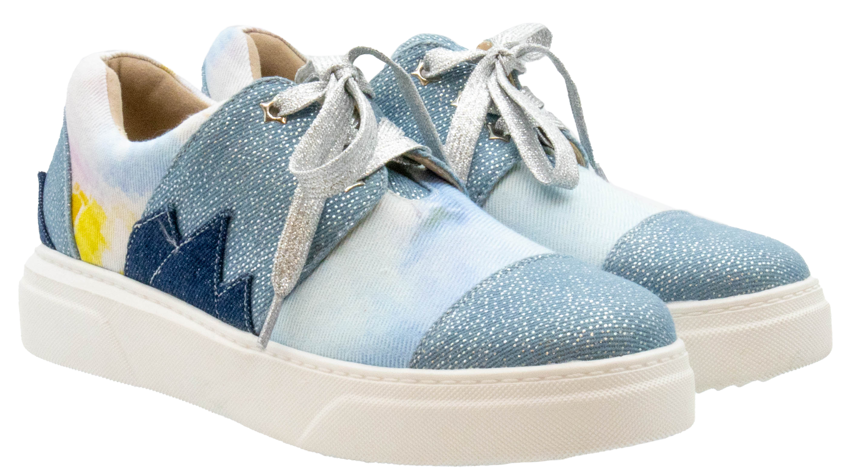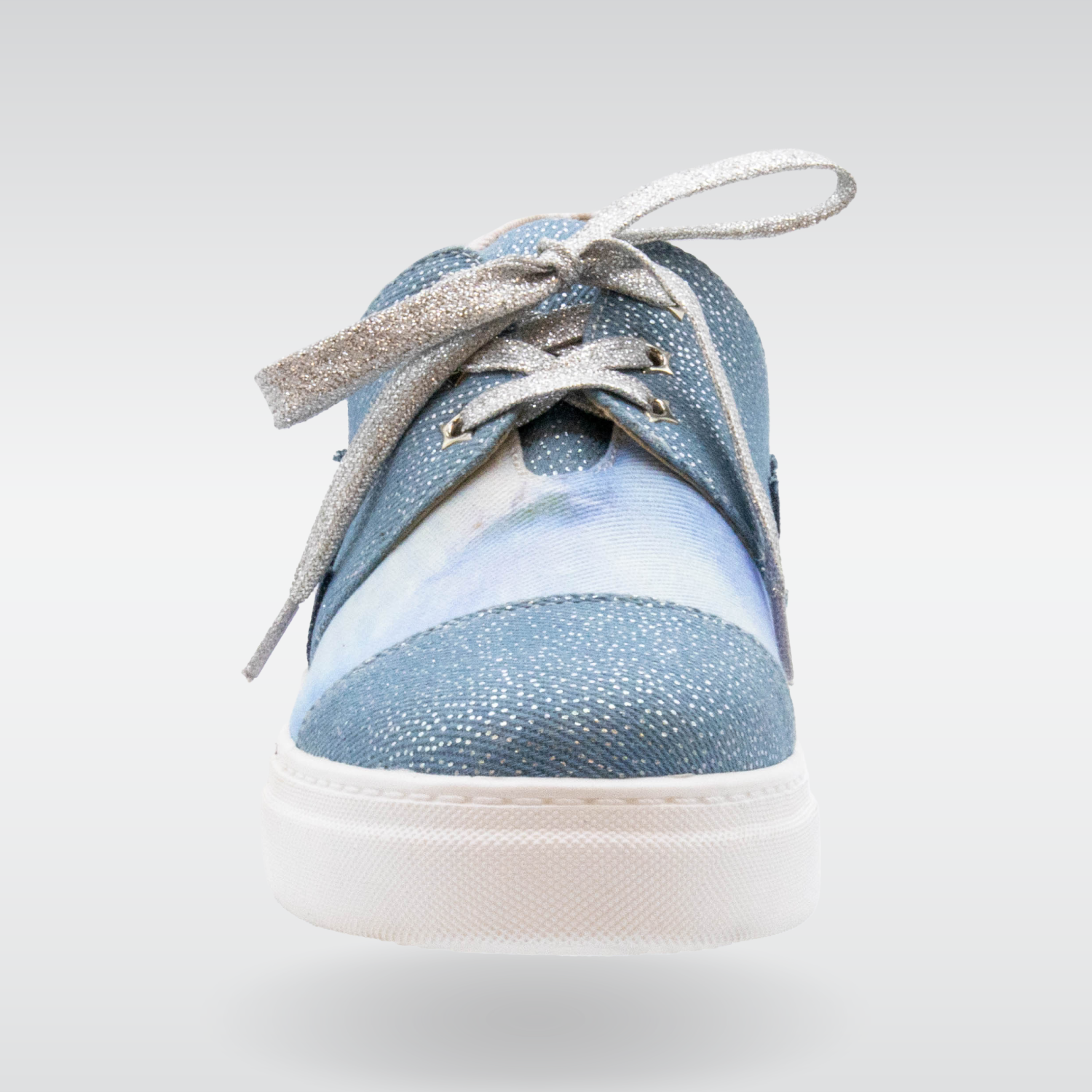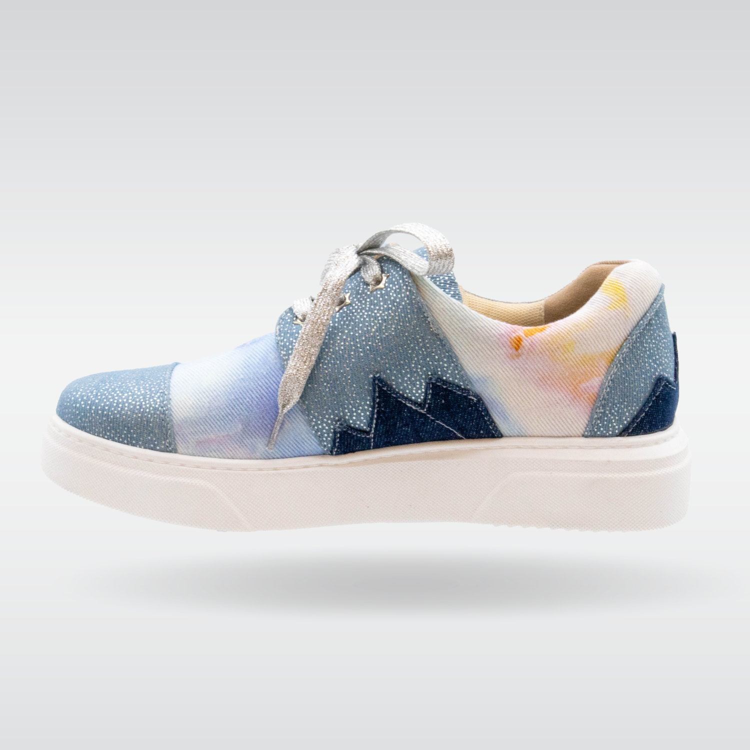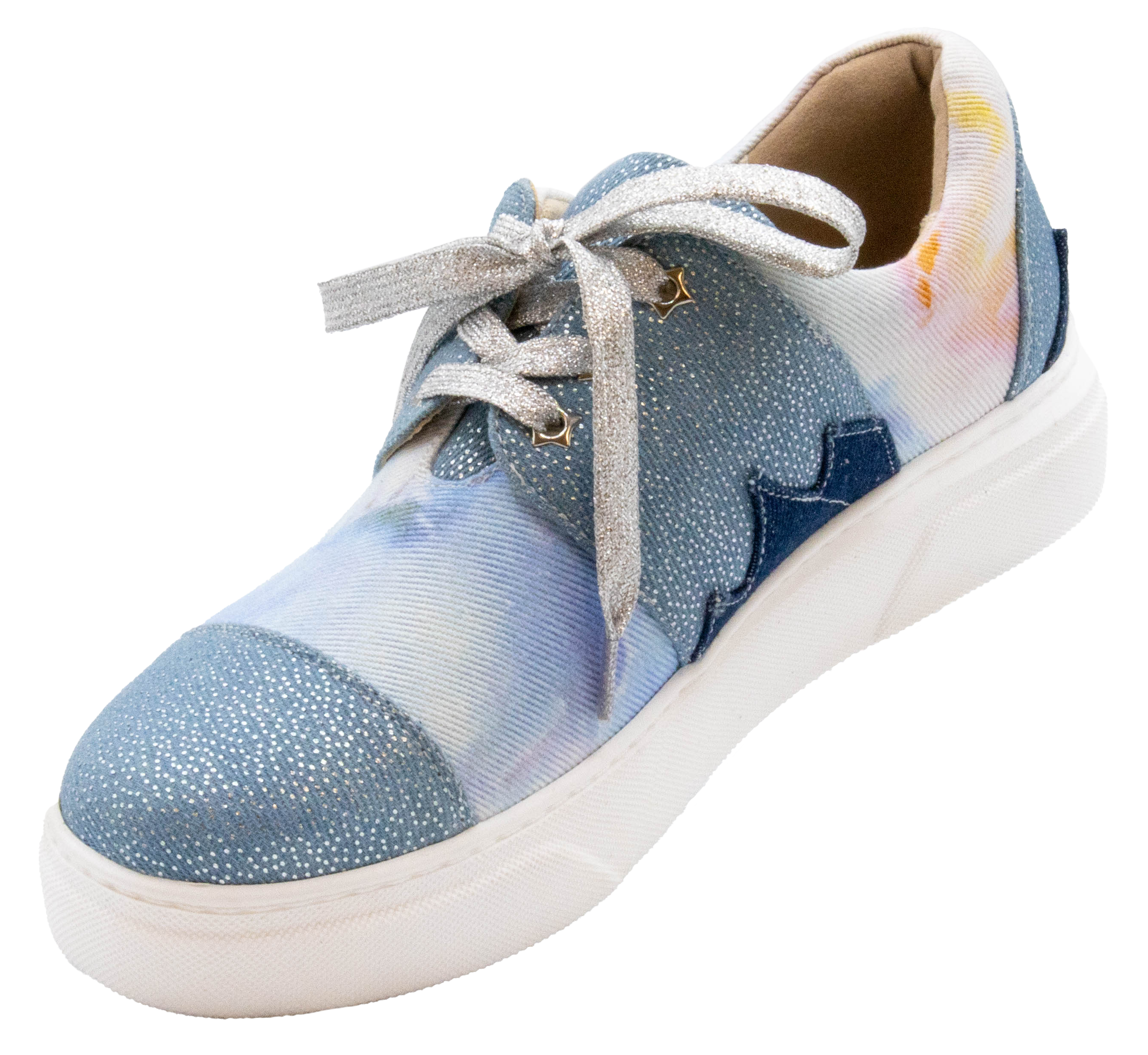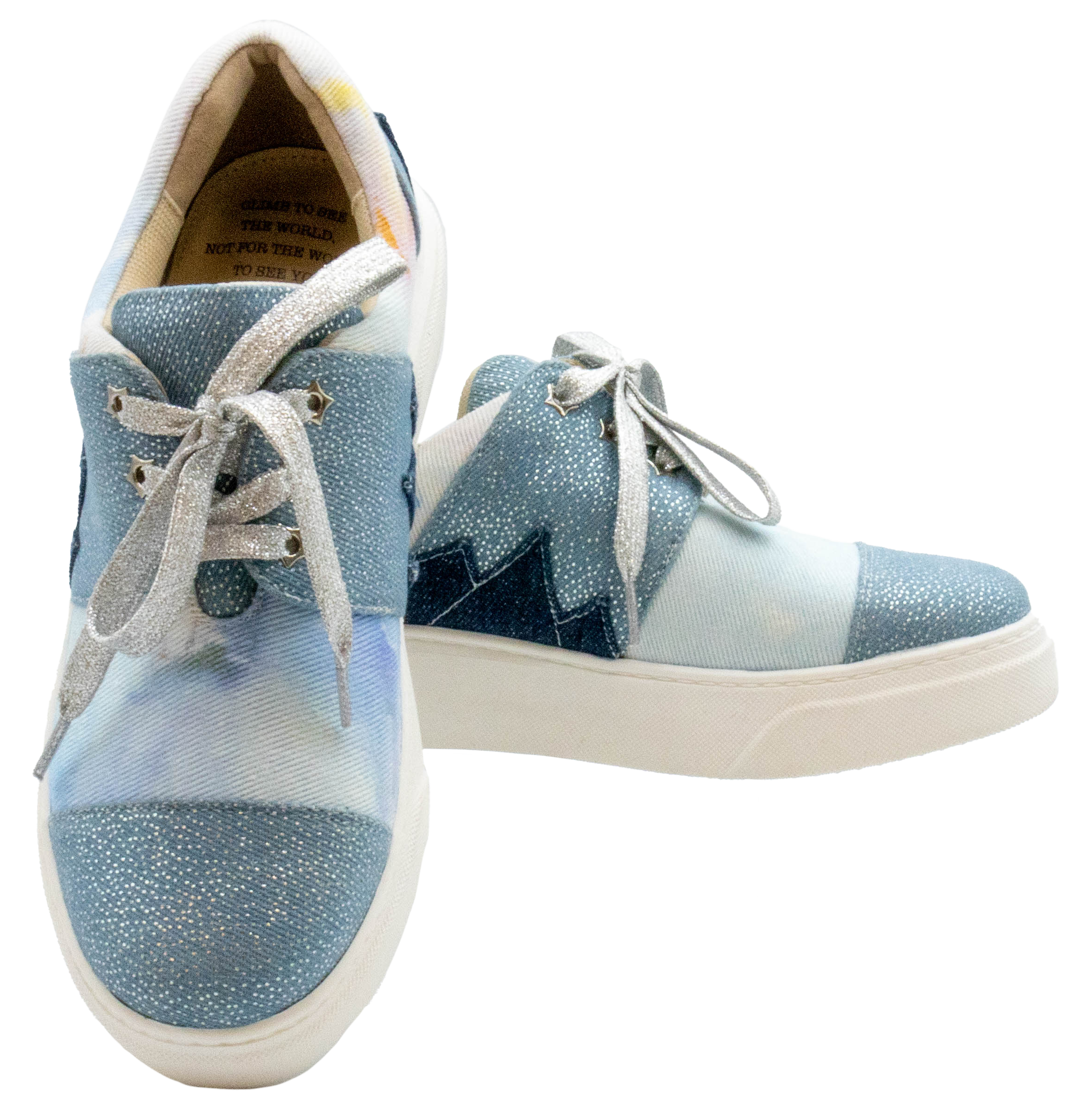 The Climb was designed to invoke the feeling of climbing to the tallest mountain and looking out at the stars and sky. The colorful base fabric has touches of different colors, meaning every shoe is slightly unique - just like our journeys.