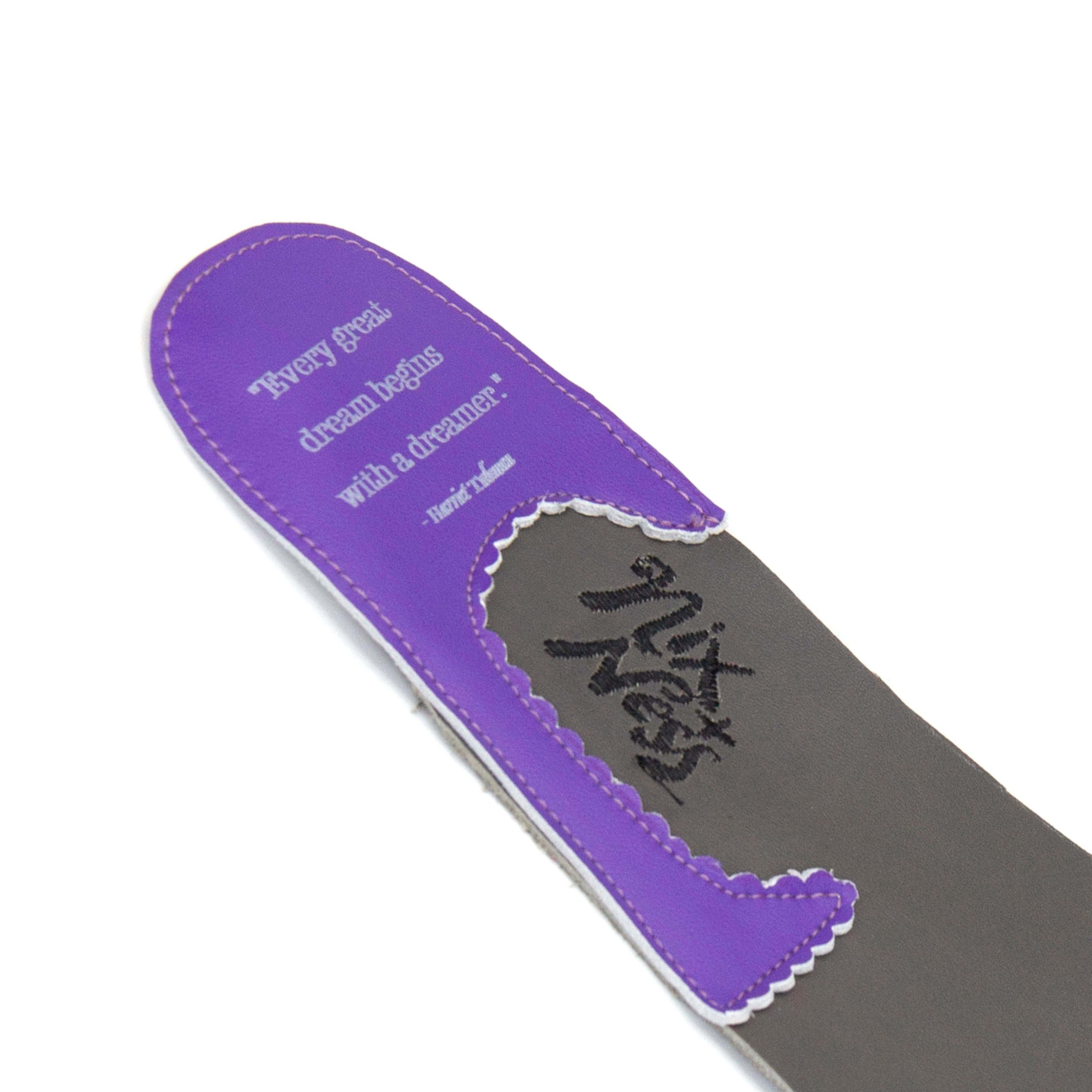The Harriet Tubman sneaker was designed to remind us all that we have the power as an individual to make a difference in the world, even when the odds are stacked against us. The rest of the quote is: “Always remember, you have within you the strength, the patience, and the passion to reach for the stars to change the world.” The embroidery on the heel of the sneaker, and the sparkly fabric is your visual reminder to reach for the stars. The casual plaid fabric on an everyday sneaker is a reminder that there need not be a special occasion in order for you to draw on your strength, patience, or passion to work on changing the world.