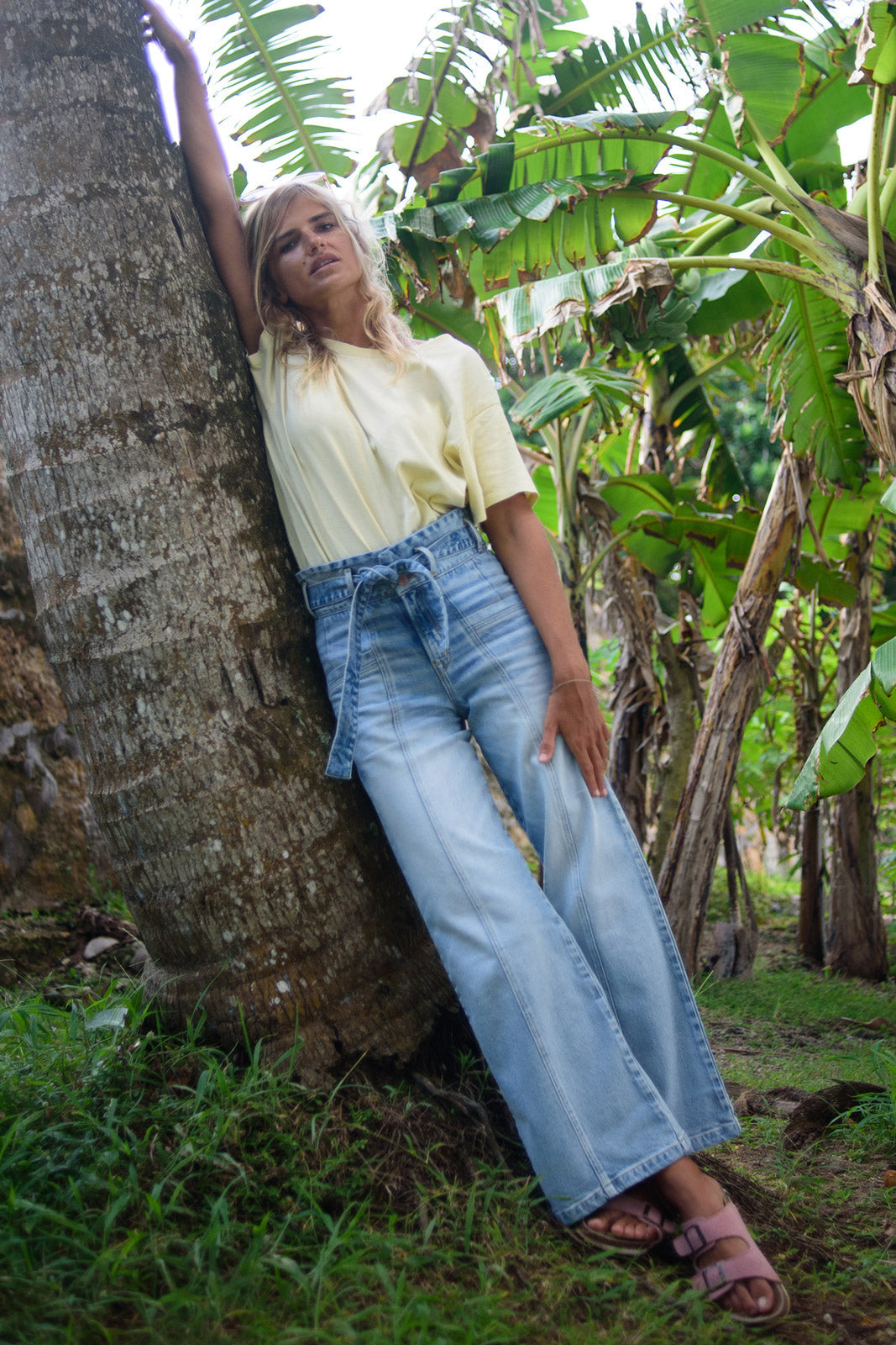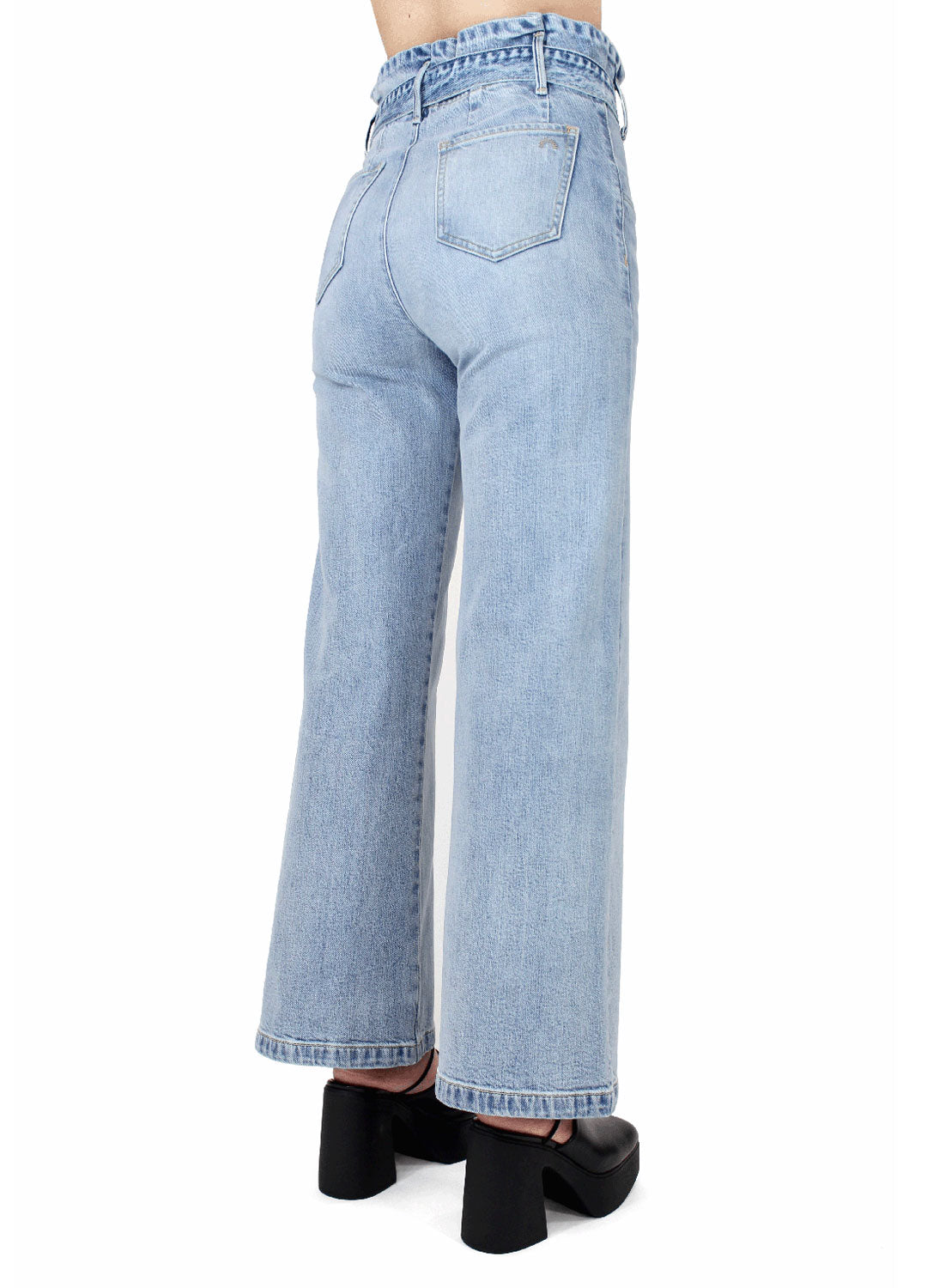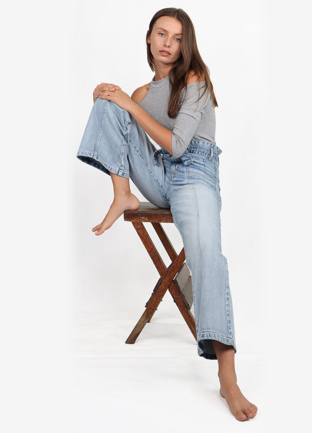Seam-ingly perfect. The Penny Paperbag is high-waisted, cinched with pleated gathers, and belted—making it flattering on all body types. With prominent front seams and angled welt front pockets, these jeans perfect any outfit.