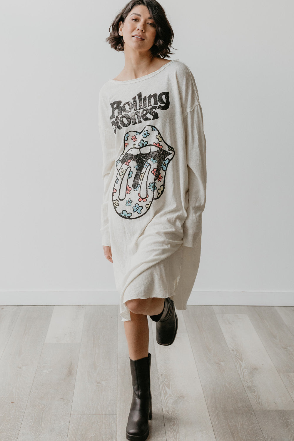 Head turner. Bright and bold, we know you haven’t seen a Rolling Stones look like this before. Inspired by the peace and love movement of the 60’s, it is hand stamped with airbrush.