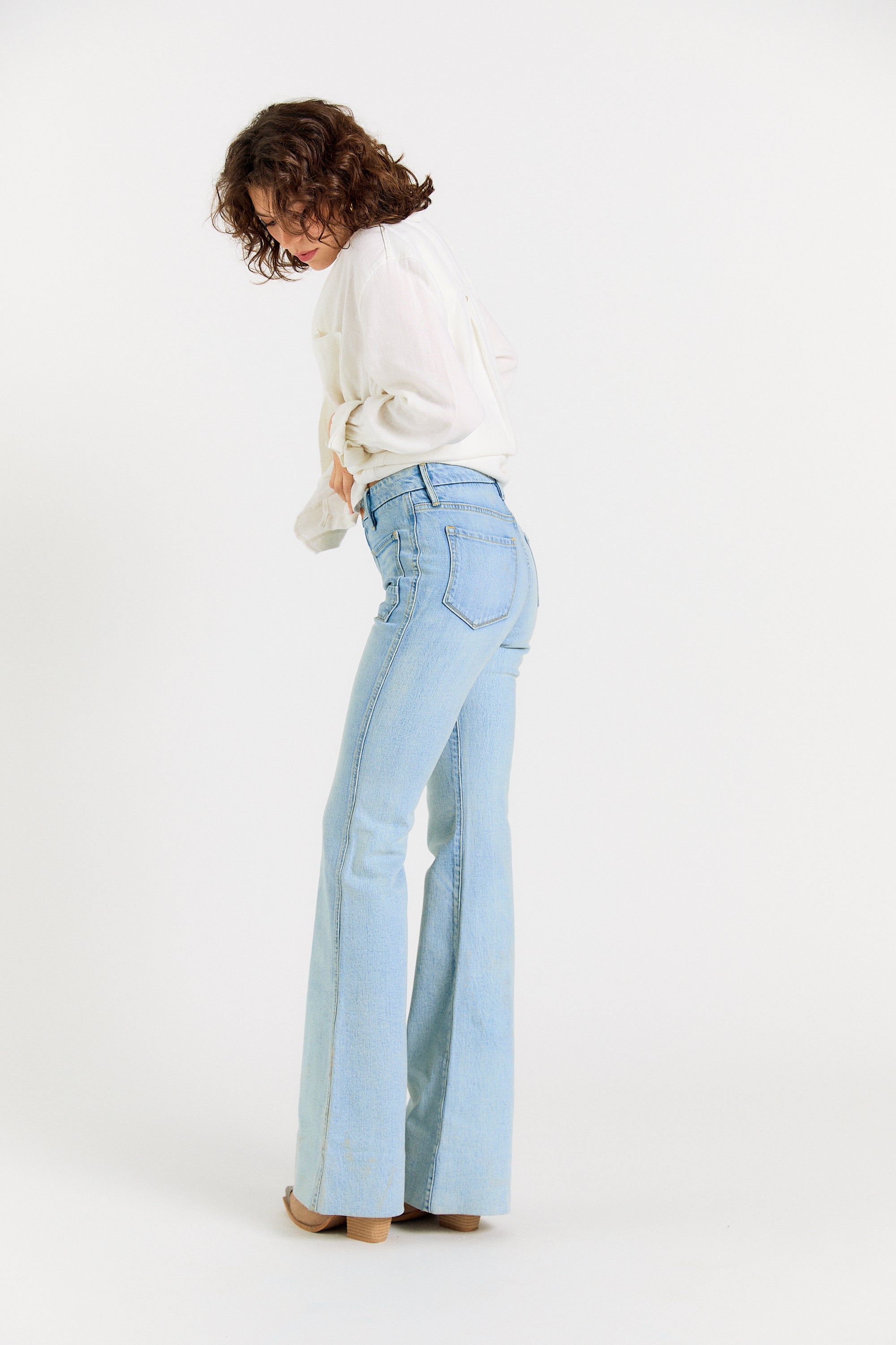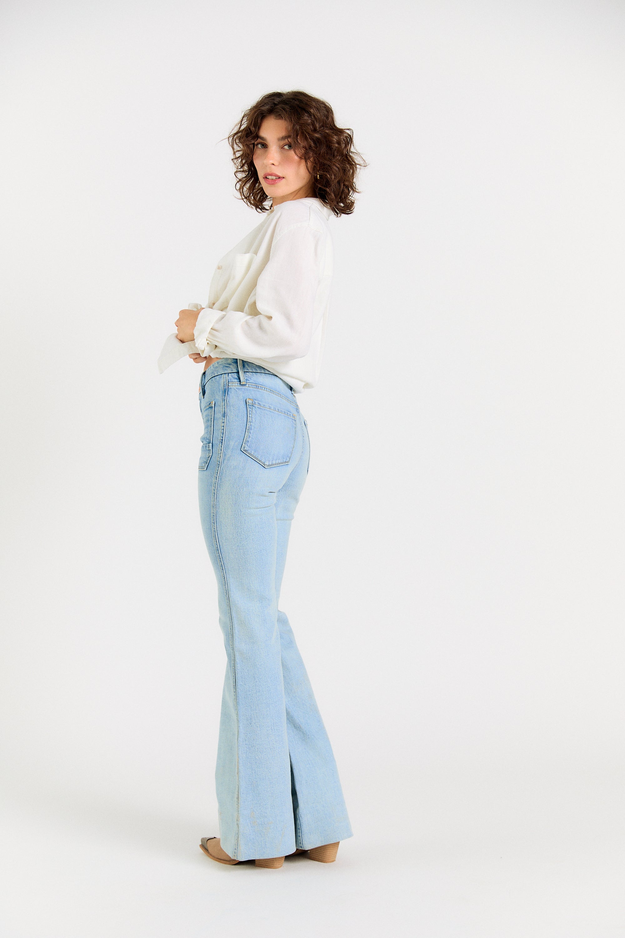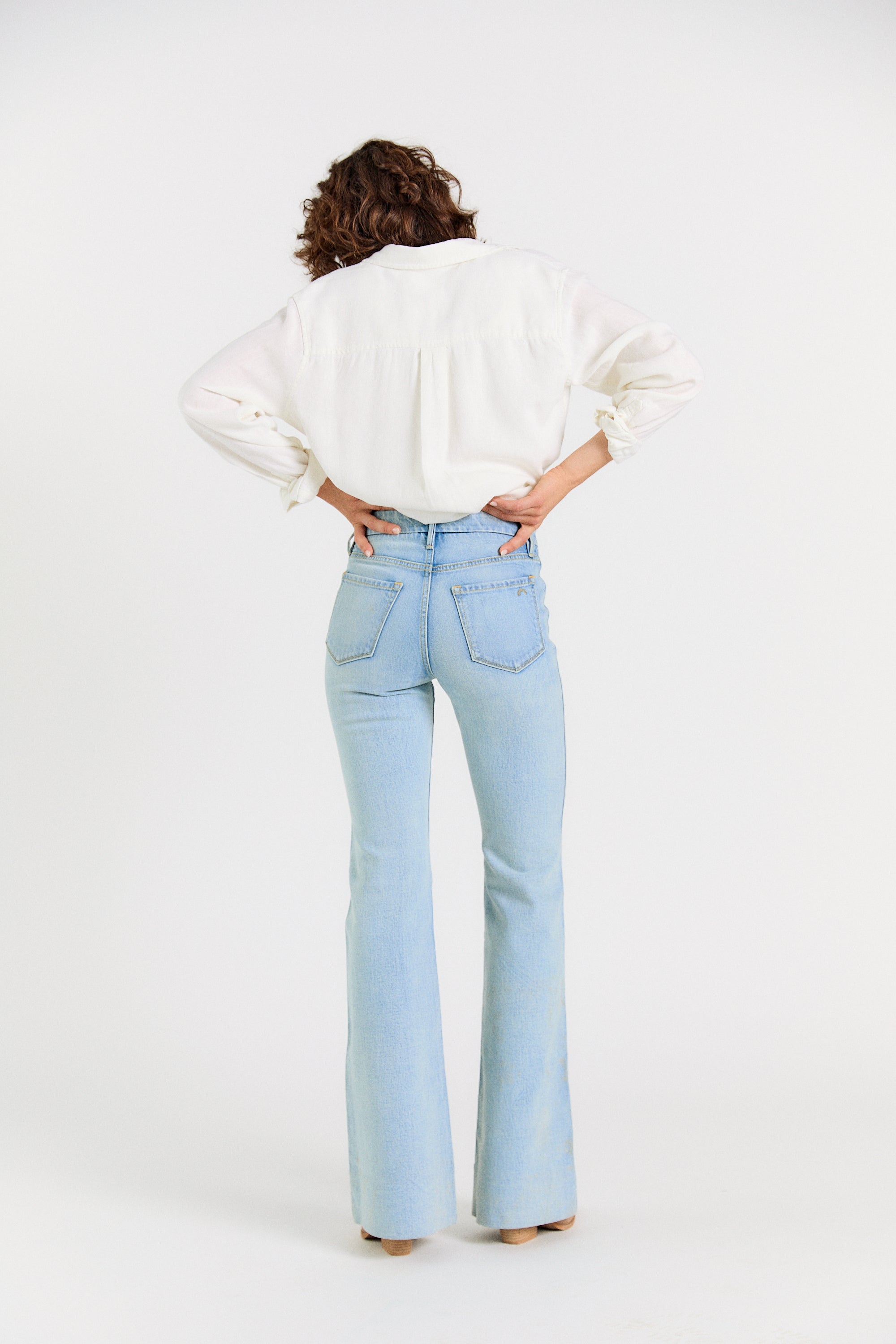Legs for days. The Wanderer Flare is our modern take on the iconic 70’s flare jean. Modernized with sailor-inspired patch pockets and a contour waistband—this flare flatters every body. Note: these jeans are intentionally long, with extra fabric behind the hem. Hem if you wish or rock them long.