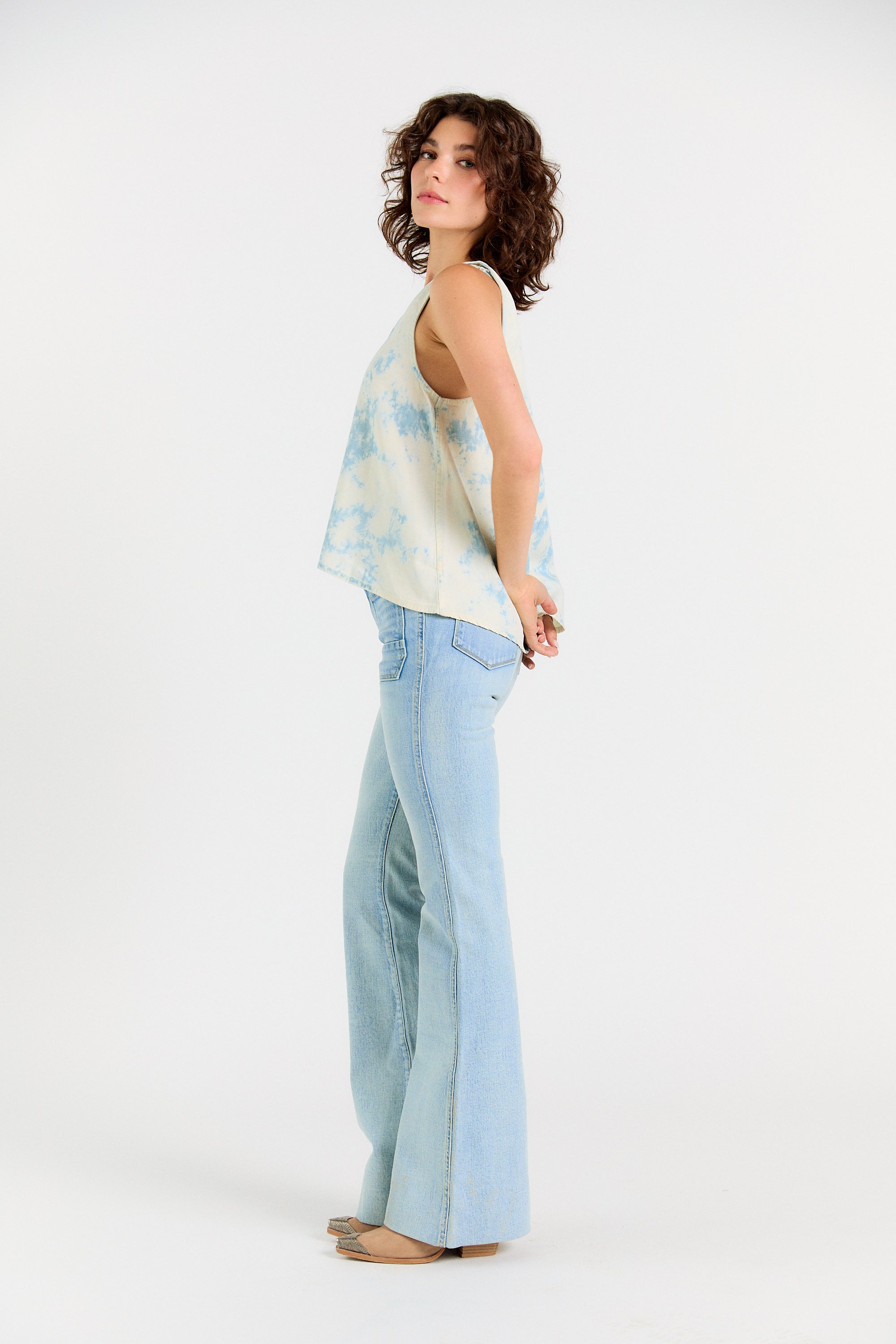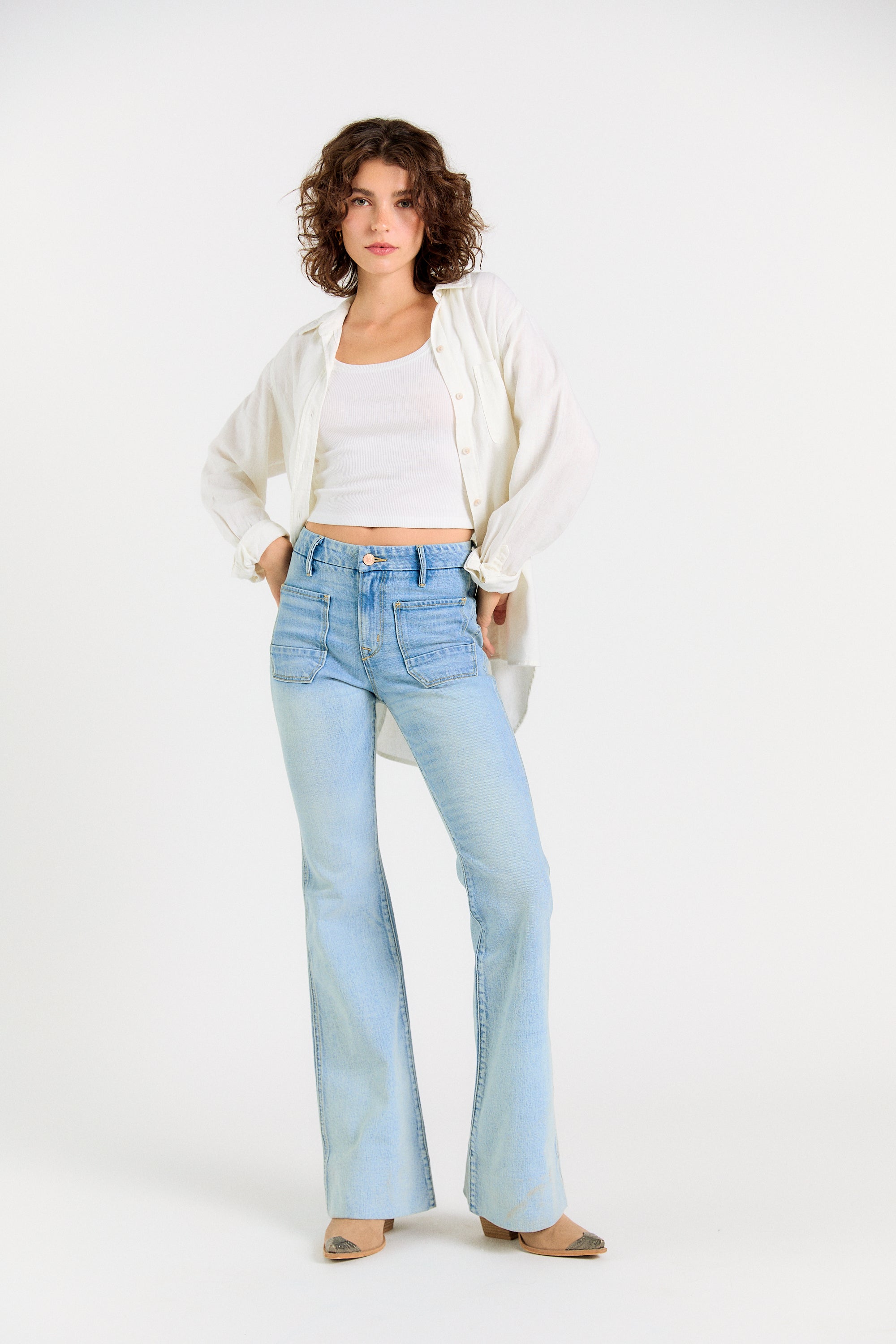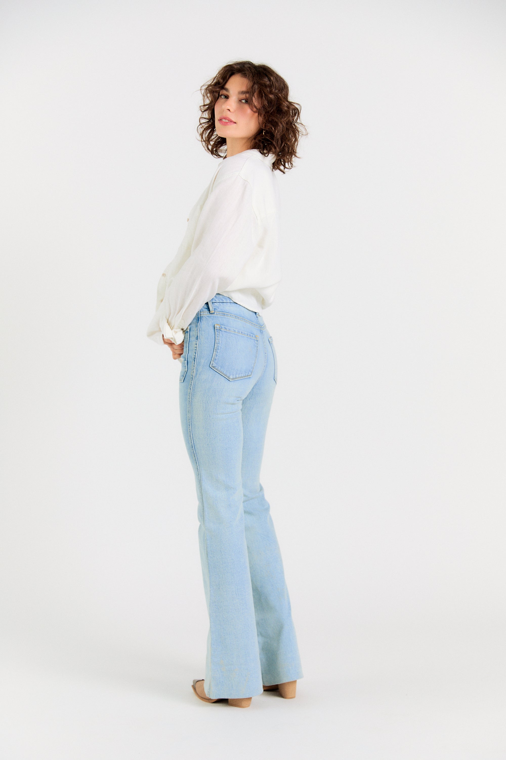 Legs for days. The Wanderer Flare is our modern take on the iconic 70’s flare jean. Modernized with sailor-inspired patch pockets and a contour waistband—this flare flatters every body. Note: these jeans are intentionally long, with extra fabric behind the hem. Hem if you wish or rock them long.