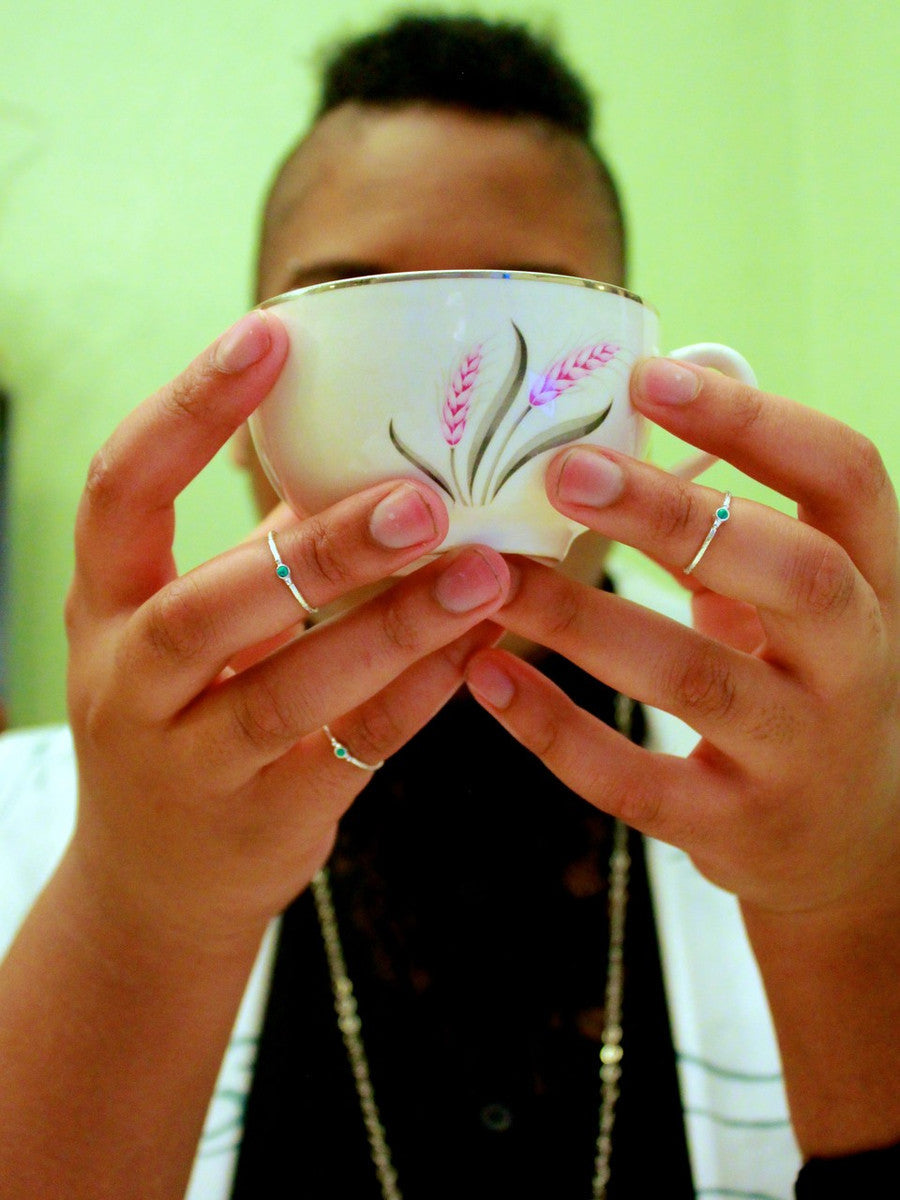 Tiny Stone Sterling Stacking Ring Set - Turquoise