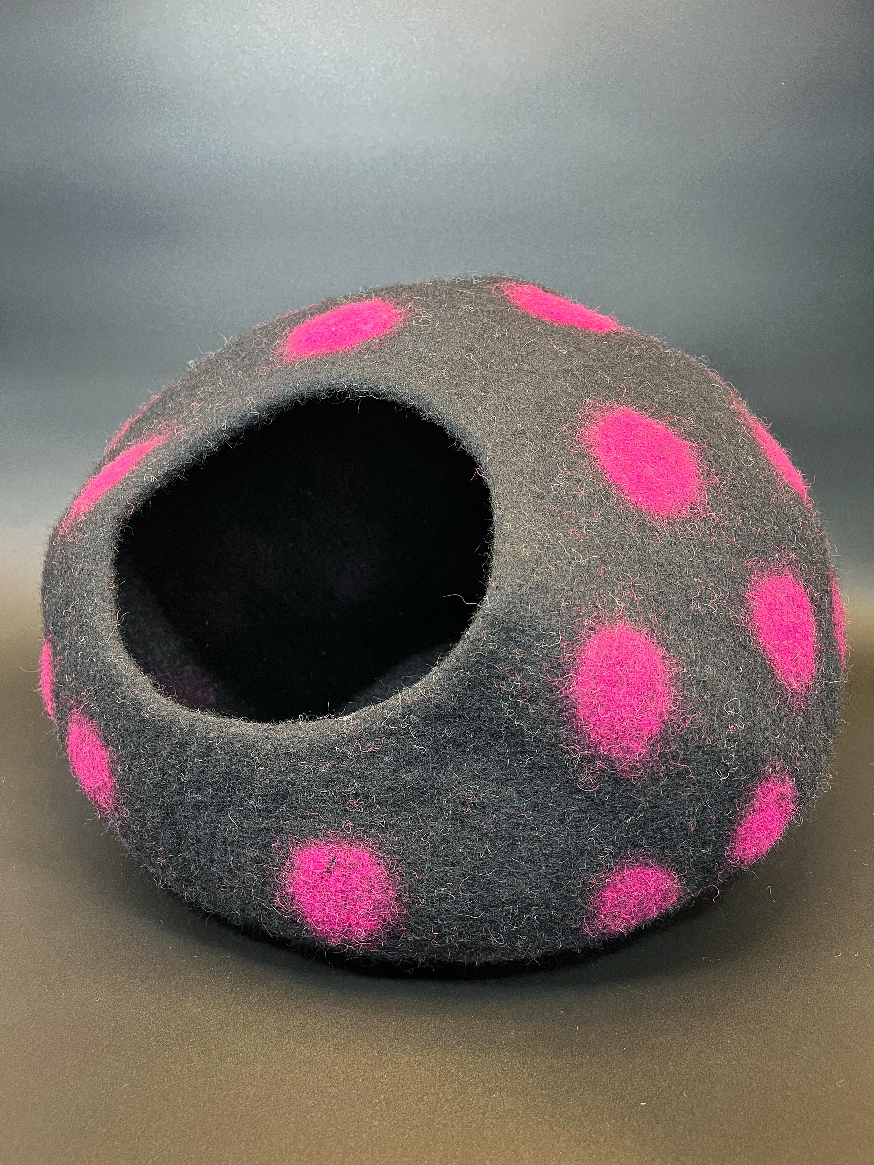 Cozy as hell and weirdly magical, the Toadstools collection is a series of handmade felted wool cat caves inspired by strange mushrooms and the cats who definitely see ghosts. Each cave is a soft, breathable pod of fungal fantasy—perfect for summoning naps, plotting against the dog, or just vibing in style.