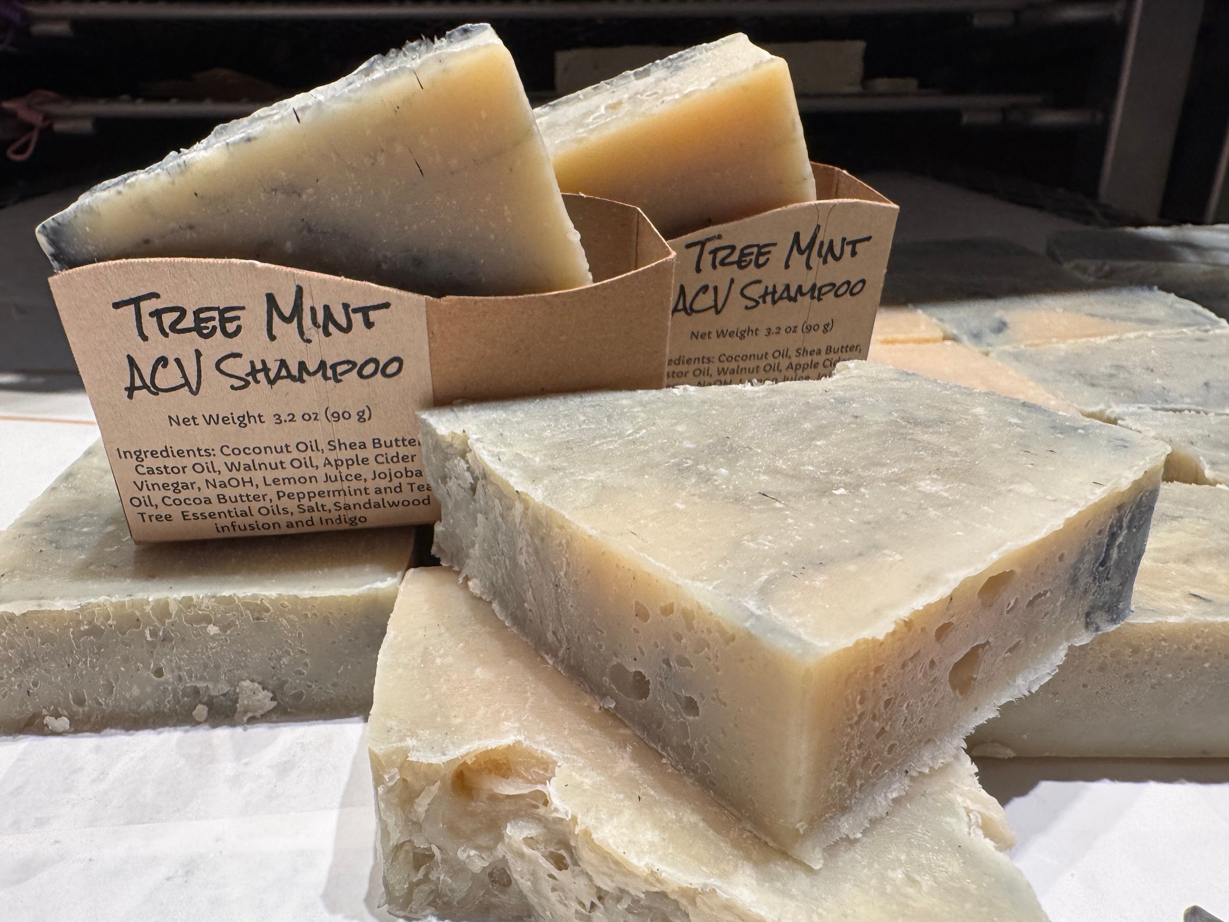 Soap based shampoo bars are a great all natural and sustainable alternative to shampoo in a bottle. Apple Cider Vinegar and Lemon Juice are great additions to a soap based shampoo when you want a gentle, thorough clean. Tree Mint is bright with Tea Tree and Peppermint.