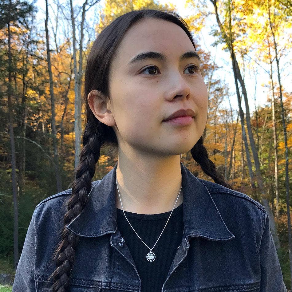 This beautiful little necklace features a small brass Tree of Life pendant, a symbol of many things including wisdom, abundance, protection and strength. Pendant measures 1/2" around. 18" gold-plated chain. Please note: Model photo shows this necklace in the sterling silver version.