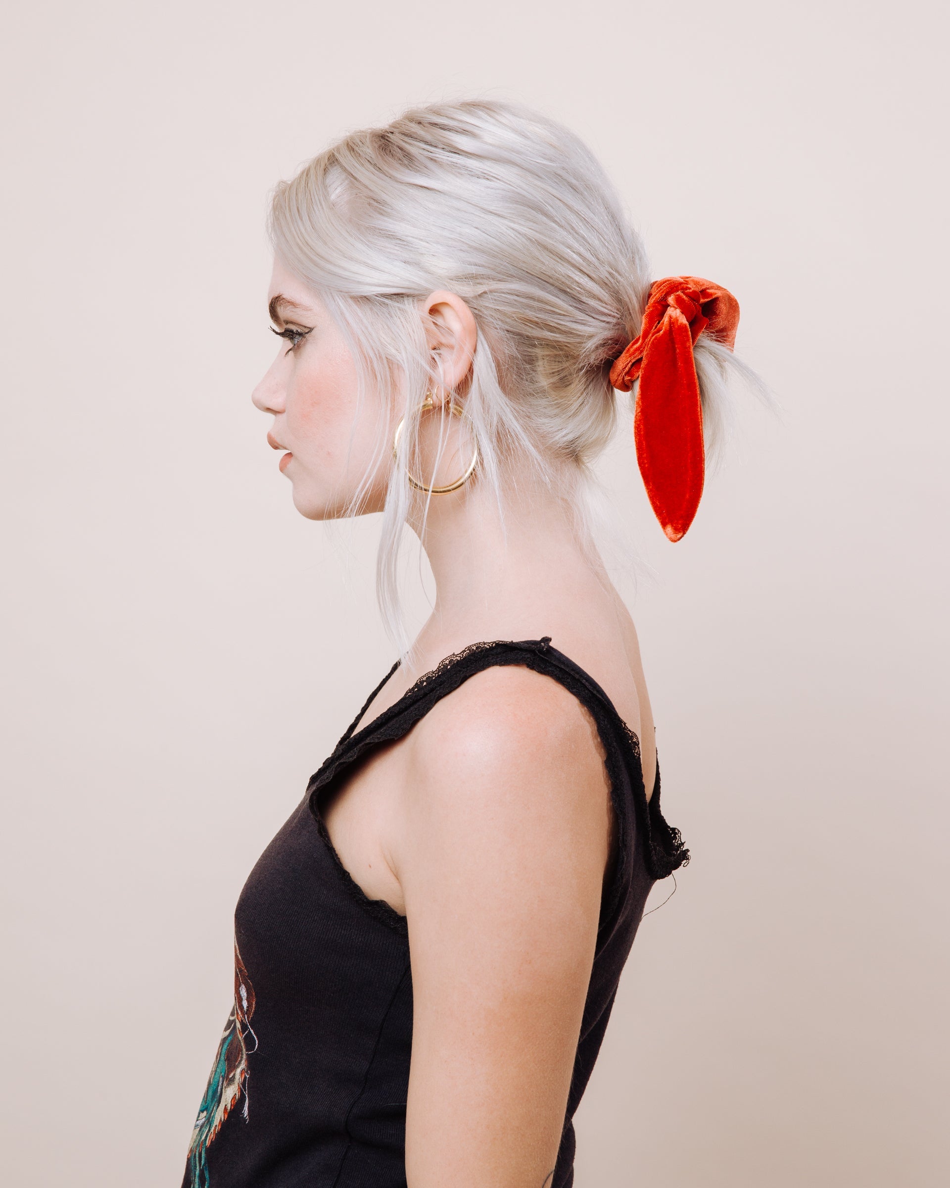 Super luxe, super fun, super fab! This velvet scrunchie tie will have you looking cute as heck! It's like a party, for your hair.