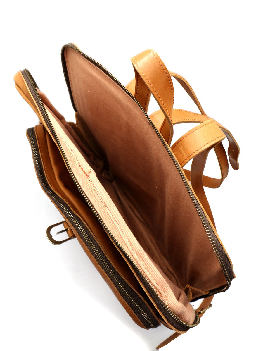 This fair trade leather backpack has adjustable straps and is big enough to hold your laptop. With three separate compartments, our Voyager Leather Backpack has enough room to keep you organized whether you are headed to the office or going on vacation. Oh... and did we mention, it's gorgeous?!