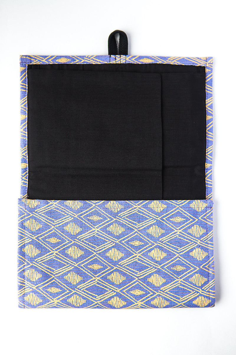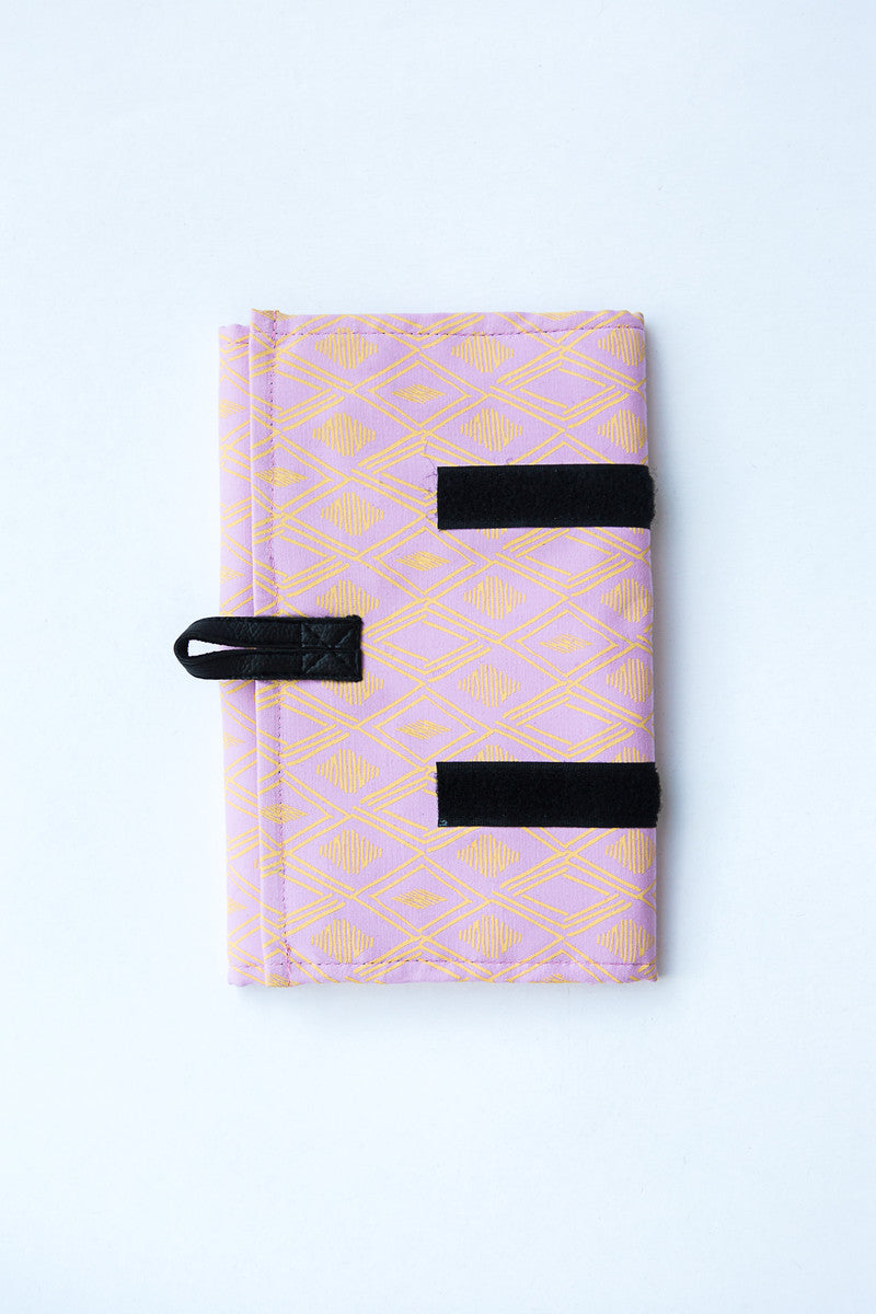 Made from handwoven organic cotton by our artisan partners in Cambodia. Screen-printed by hand using eco-friendly dyes. Accessories from vegan leather, including a loop on the back to hang the organizer.