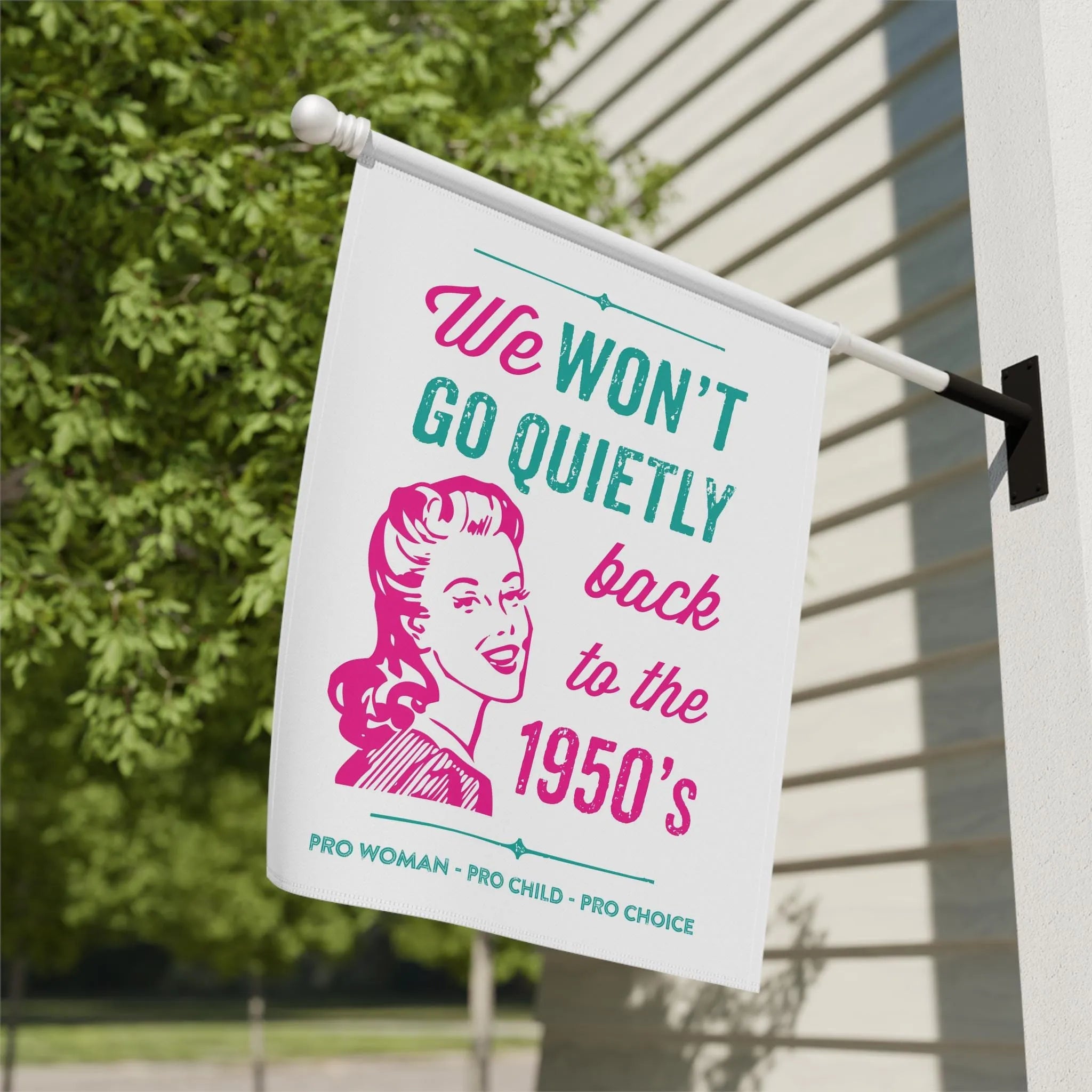 "We Won't Go Quietly Back to the 1950s" Garden Flag or House Banner