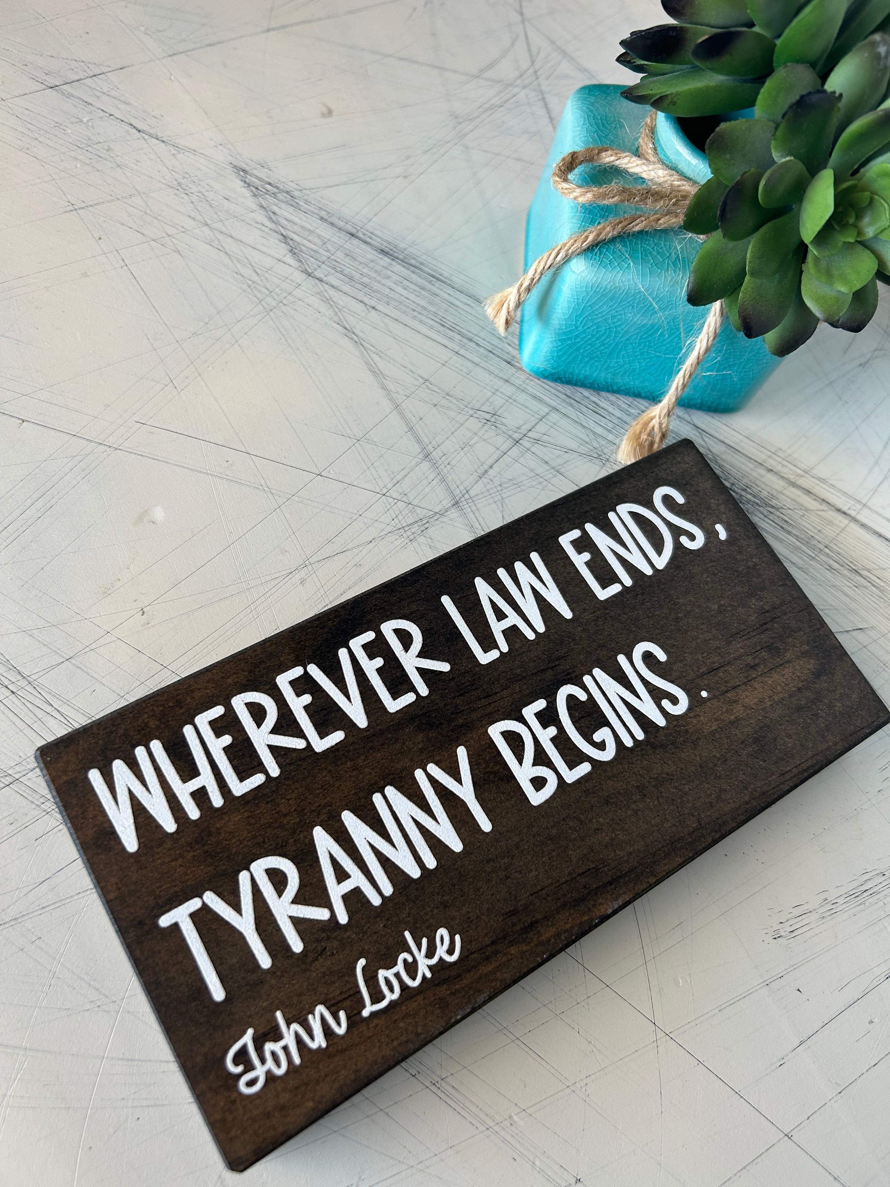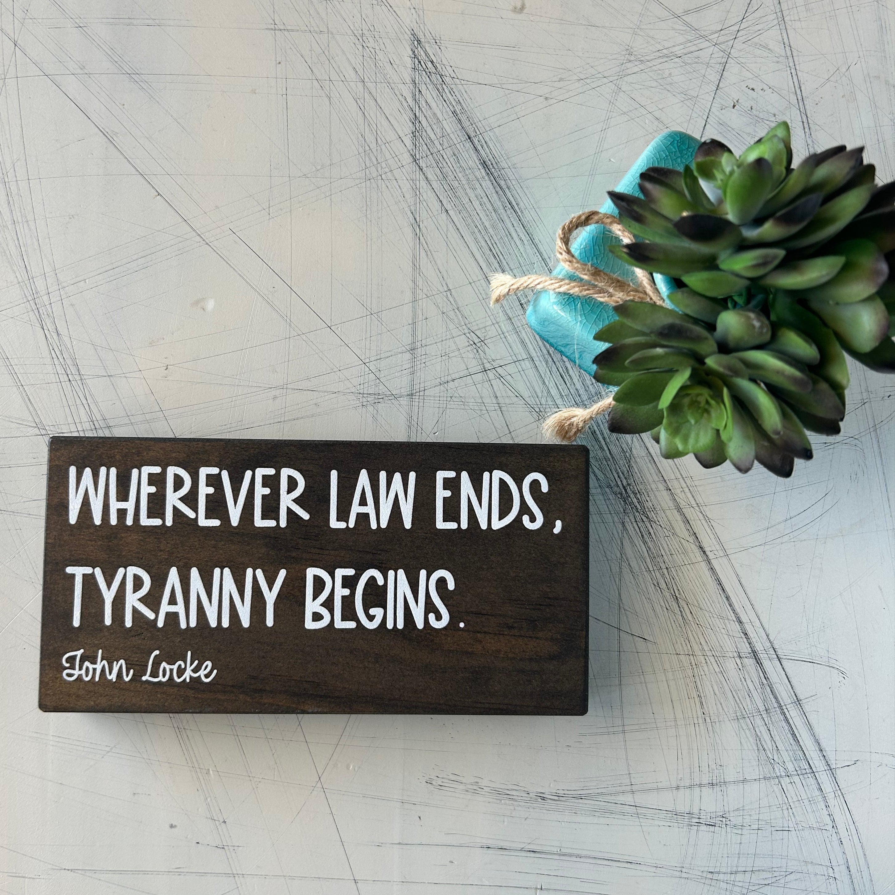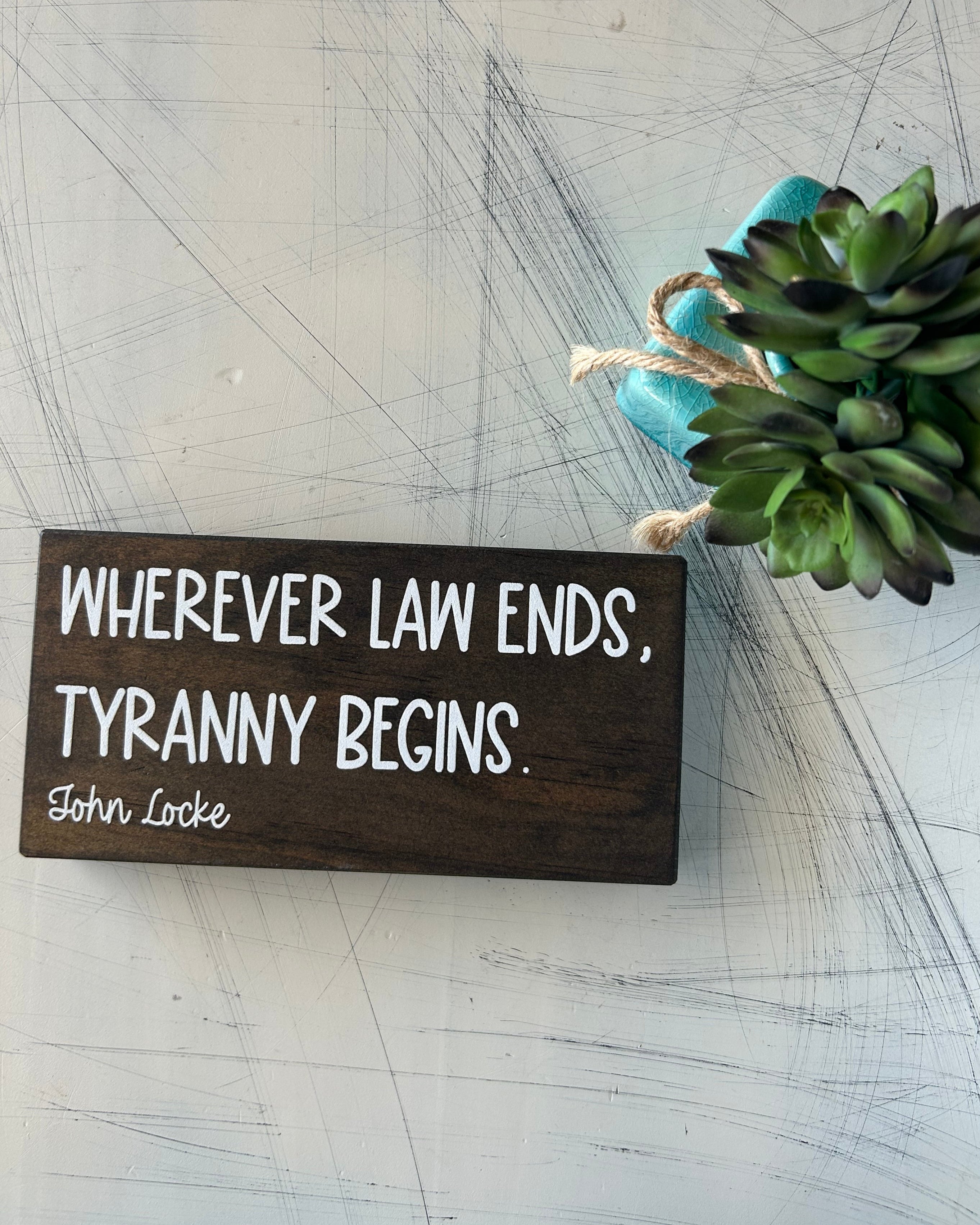 Wherever law ends, tyranny begins. - John Locke - mini wood sign