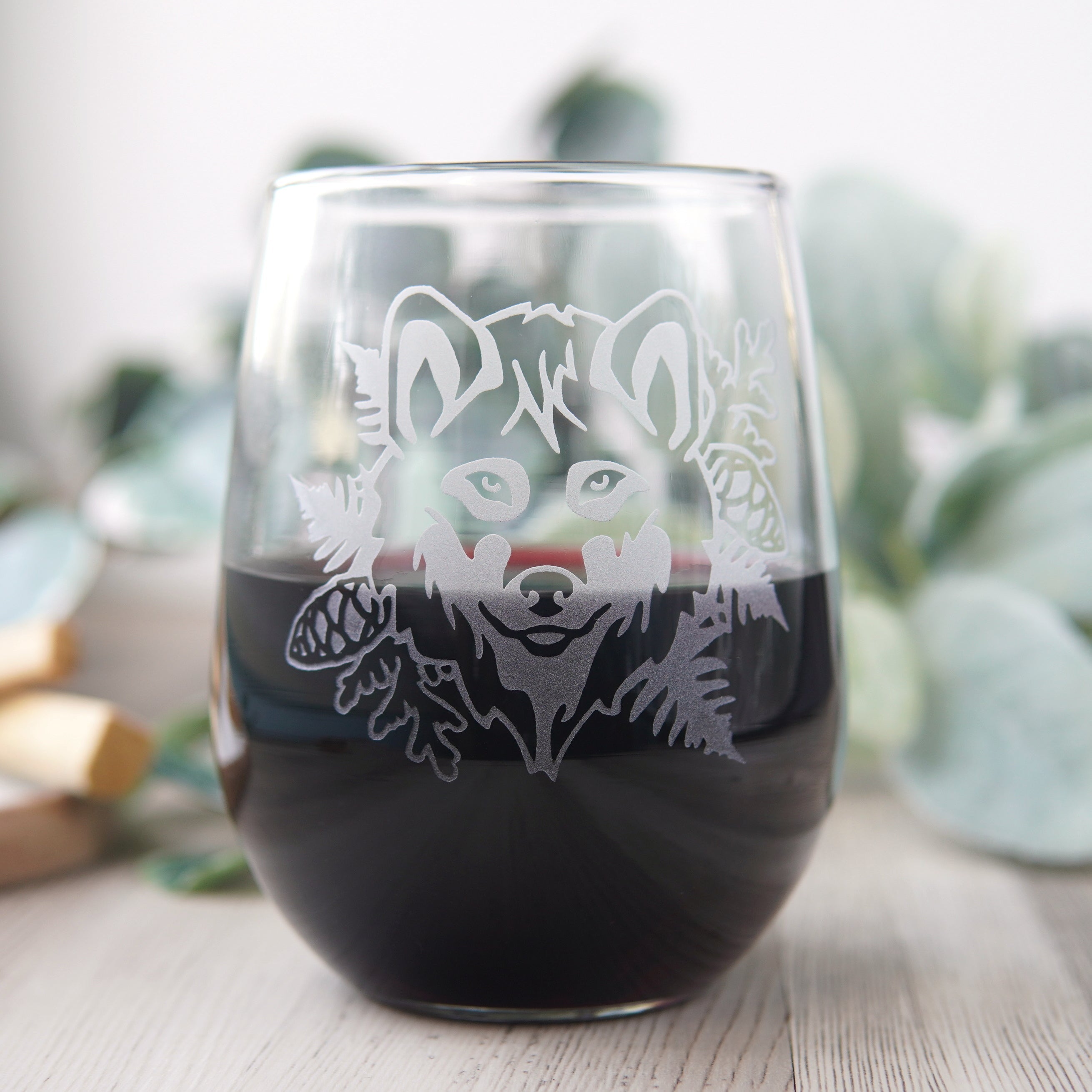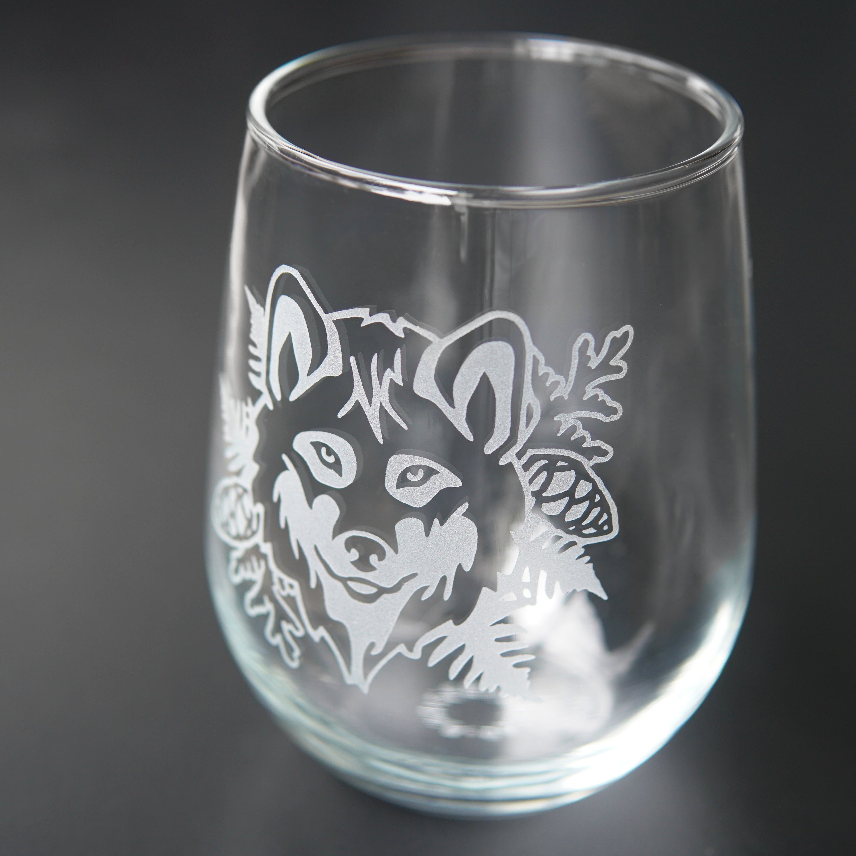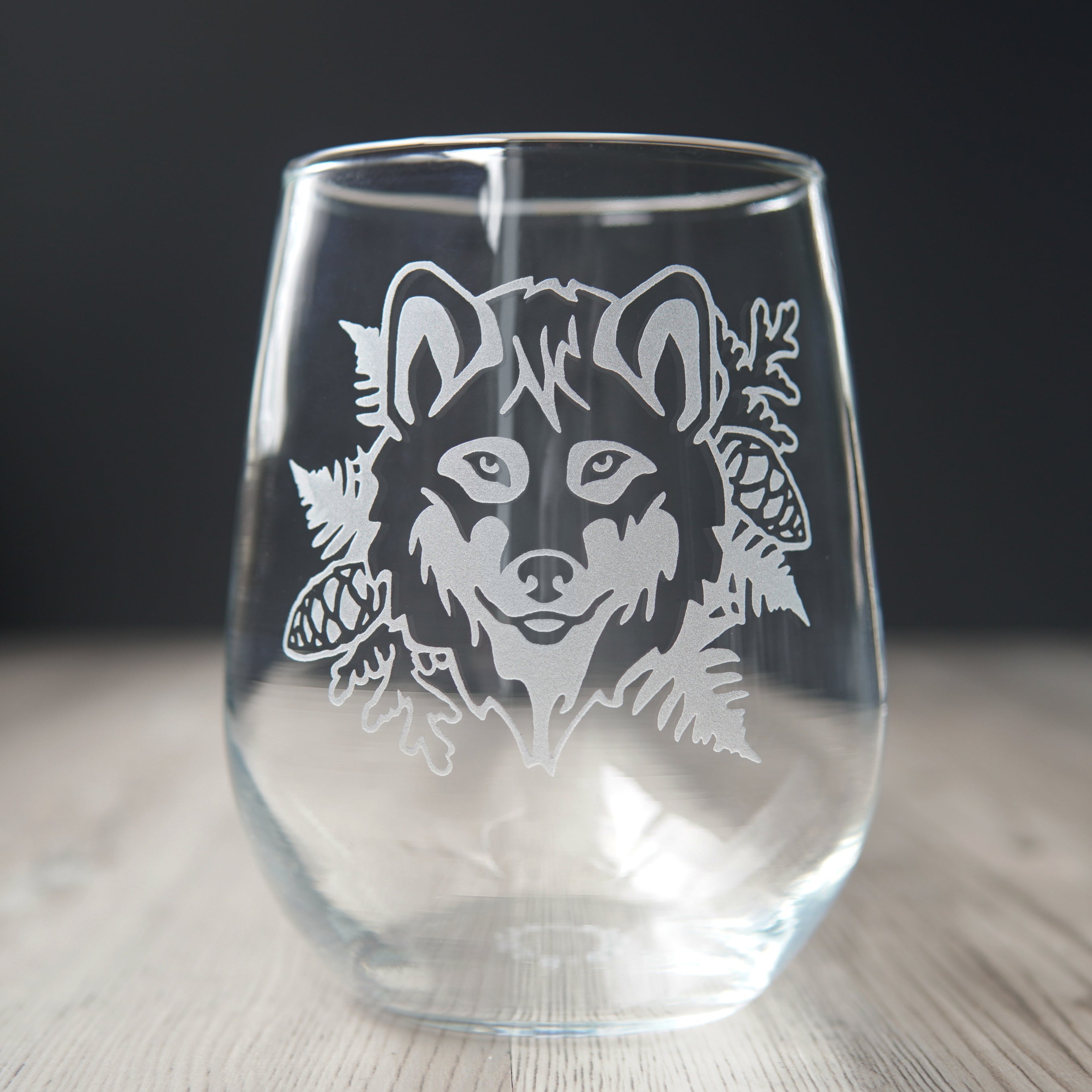 Peeking through the forest ferns and cedar branches is a clever and cunning wolf. Celebrate the loyalty of your pack by sharing a set of wolf stemless wine glasses with them.