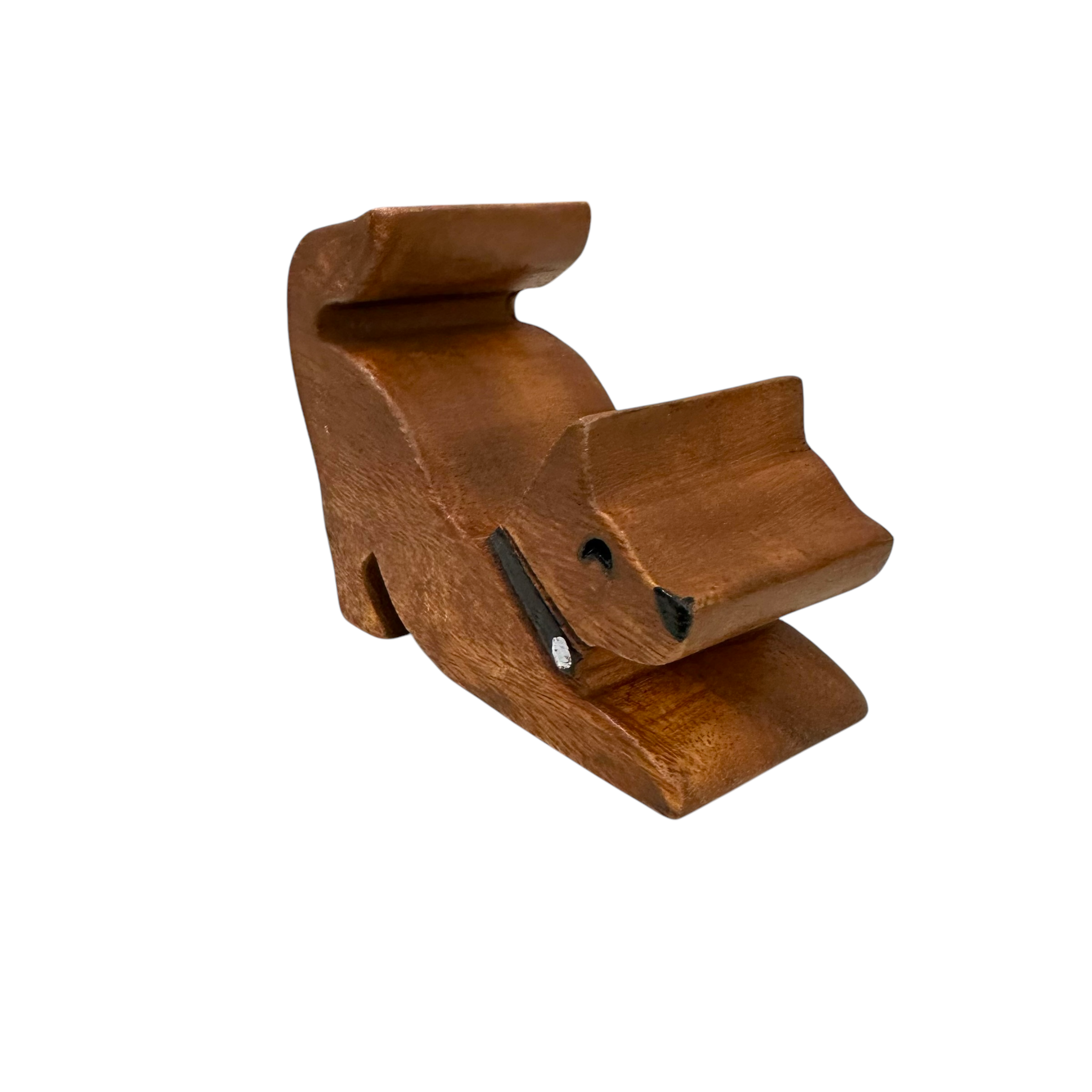 a delightful blend of functionality and charm. Crafted from natural wood, this adorable stand securely holds your phone in portrait or landscape mode. Perfect for dog lovers or as a unique gift, it adds a touch of whimsy to any desk or nightstand.