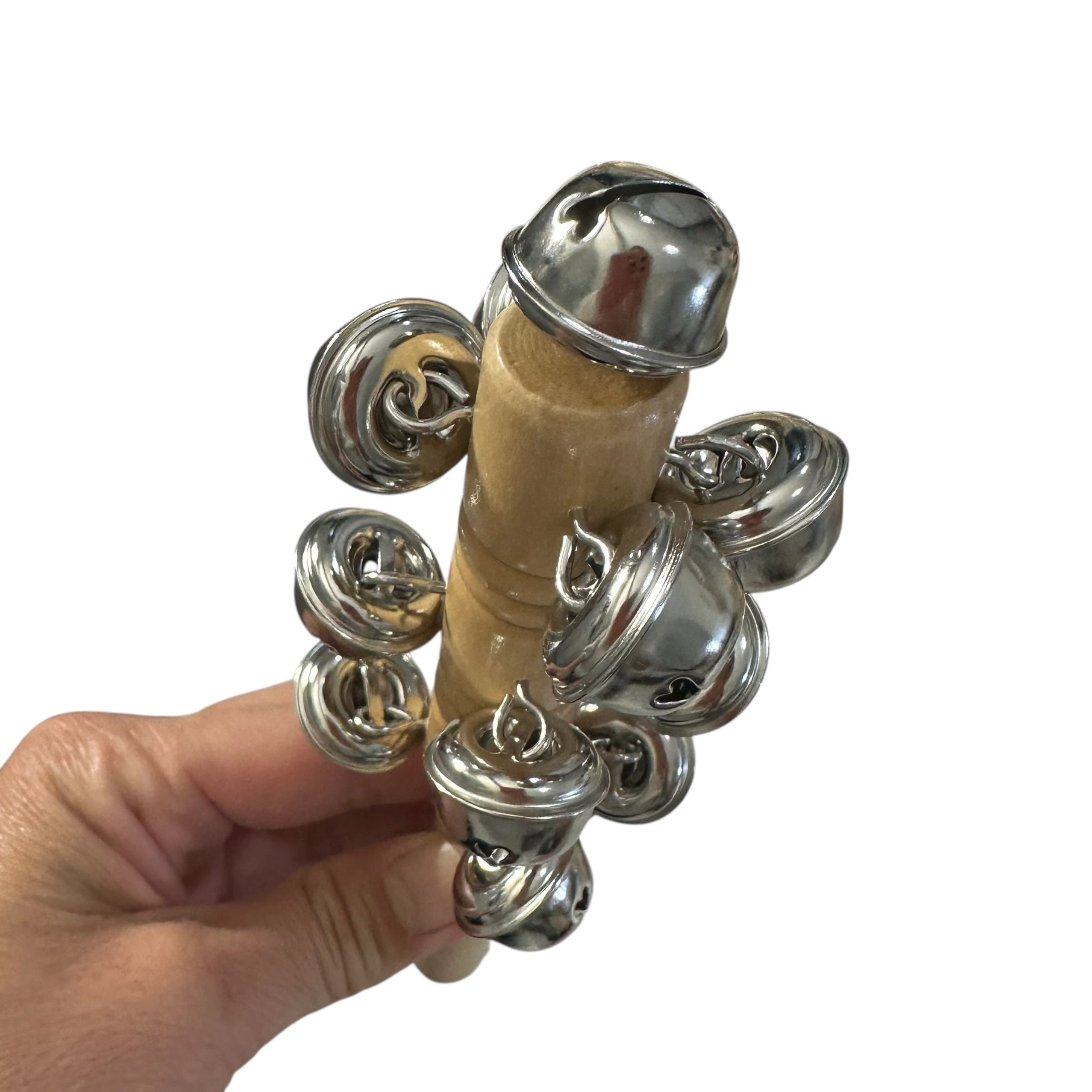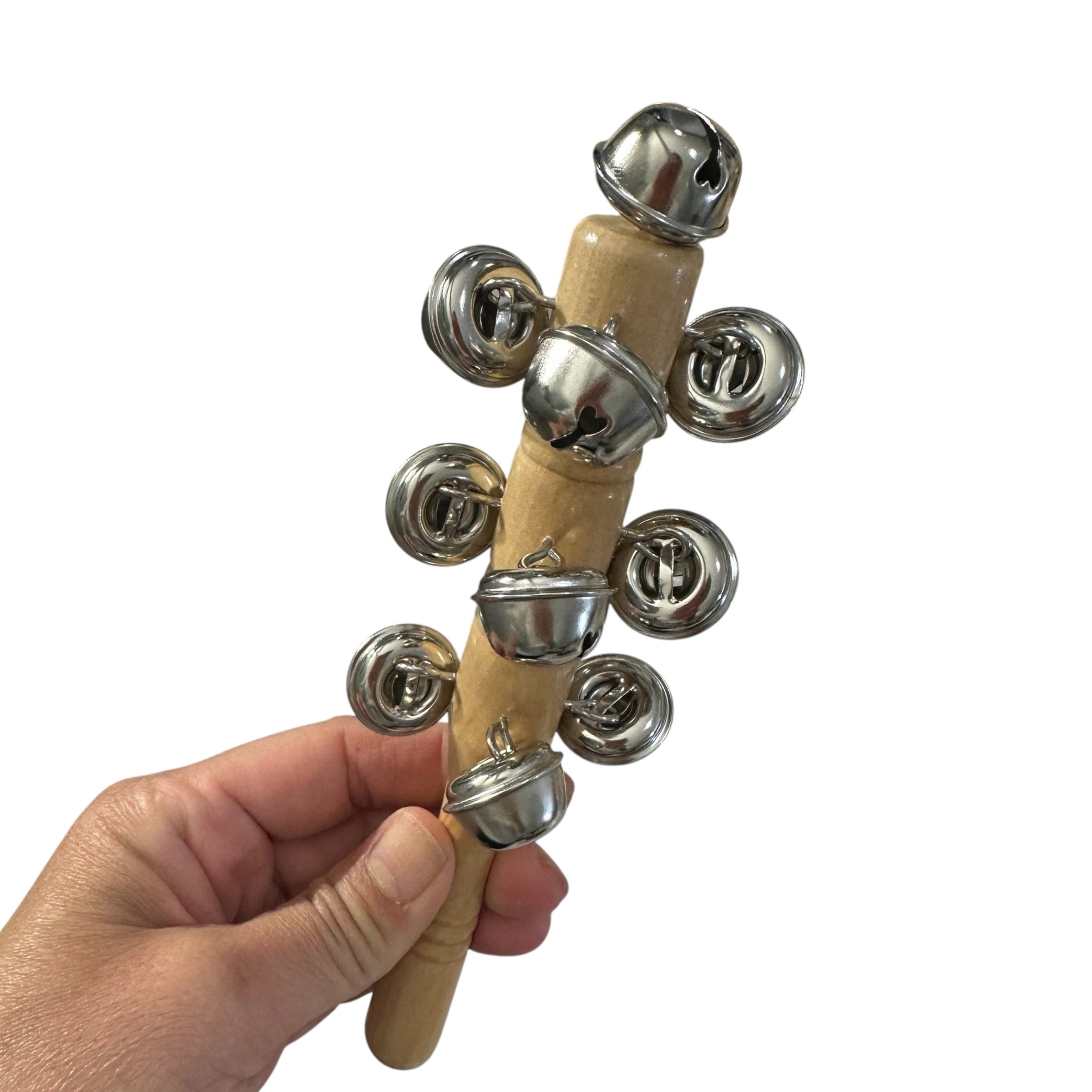 Bring a cheerful jingle to music learning with this wooden jingle stick. Featuring a natural wood handle and multiple bright metal bells, this instrument is lightweight and easy to hold for children of all ages.