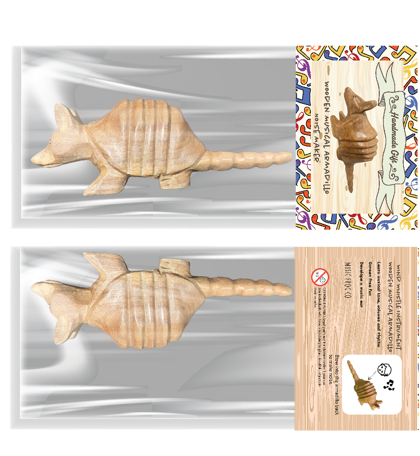 Wooden Musical Armadillo Whistle Instrument