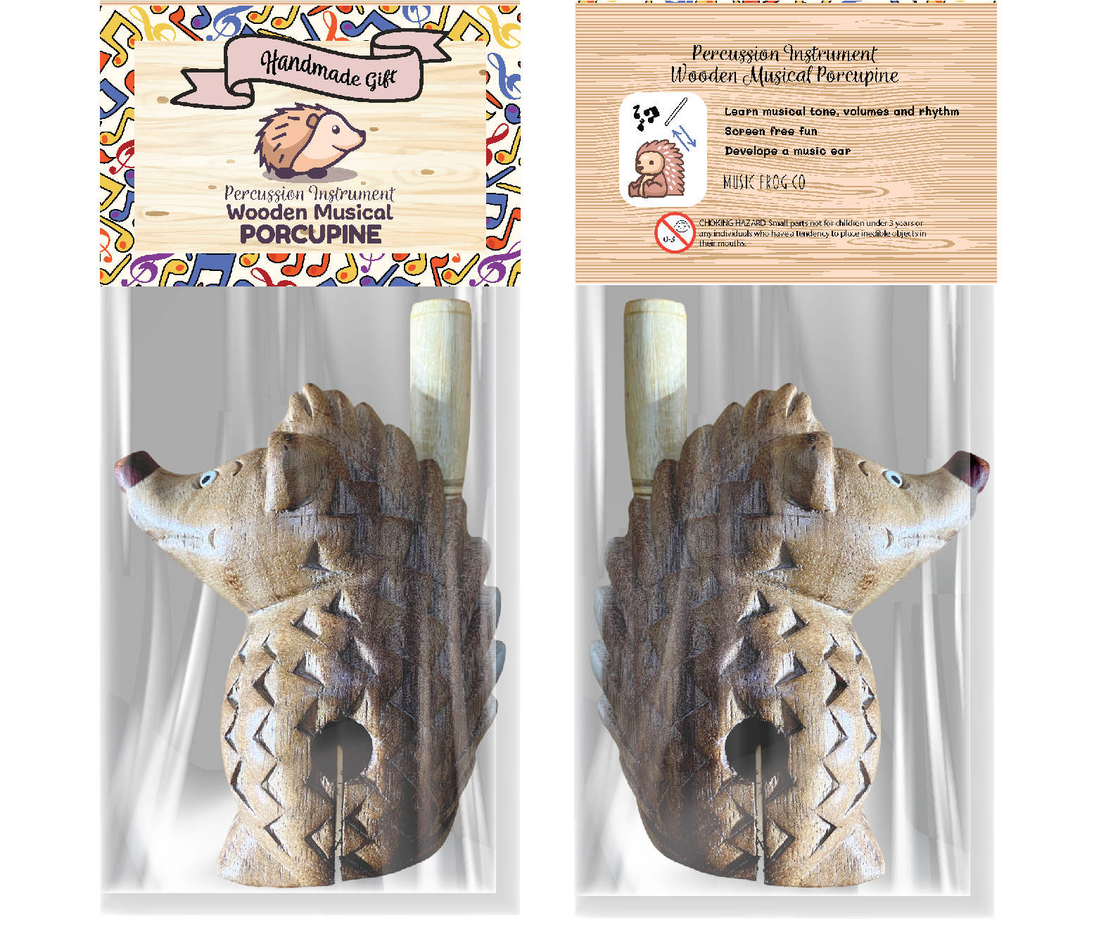 Wooden Musical Porcupine Percussion Instrument